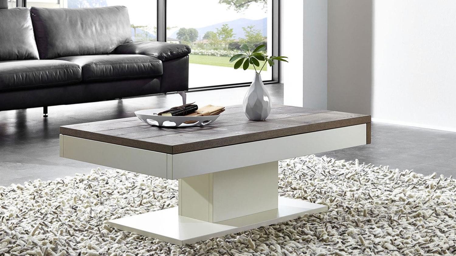 Dieser Couchtisch LIGHT LINE aus dem Hause "Die Hausmarke" sieht nicht nur sehr stilvoll aus, sondern bietet eine coole Schiebefunktion. Die Tischplatte kann kinderleicht verschoben werden, um in dem darunterliegenden Fach Kleinigkeiten zu verstauen. Die moderne Holzoptik in Alteiche antik grau furniert, harmoniert ausgezeichnet mit dem Gestell und der Fußplatte in weiß matt lack und lässt das Wohnzimmer gemütlich wirken.
