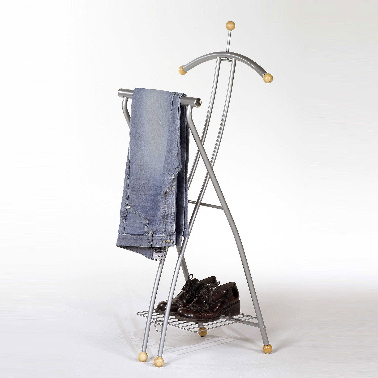 Ob als täglicher Begleiter für die Vorbereitung Ihrer Kleidung am nächsten Tag oder als stilvolle Ablage für Ihre Lieblingsstücke – der Herrendiener Leo bietet vielfältige Einsatzmöglichkeiten. Nutzen Sie ihn, um Ihre Anzüge knitterfrei aufzuhängen oder Ihre Lieblingshemden in Szene zu setzen. Die integrierte Schuhablage sorgt zusätzlich dafür, dass Ihre Schuhe stets griffbereit sind.