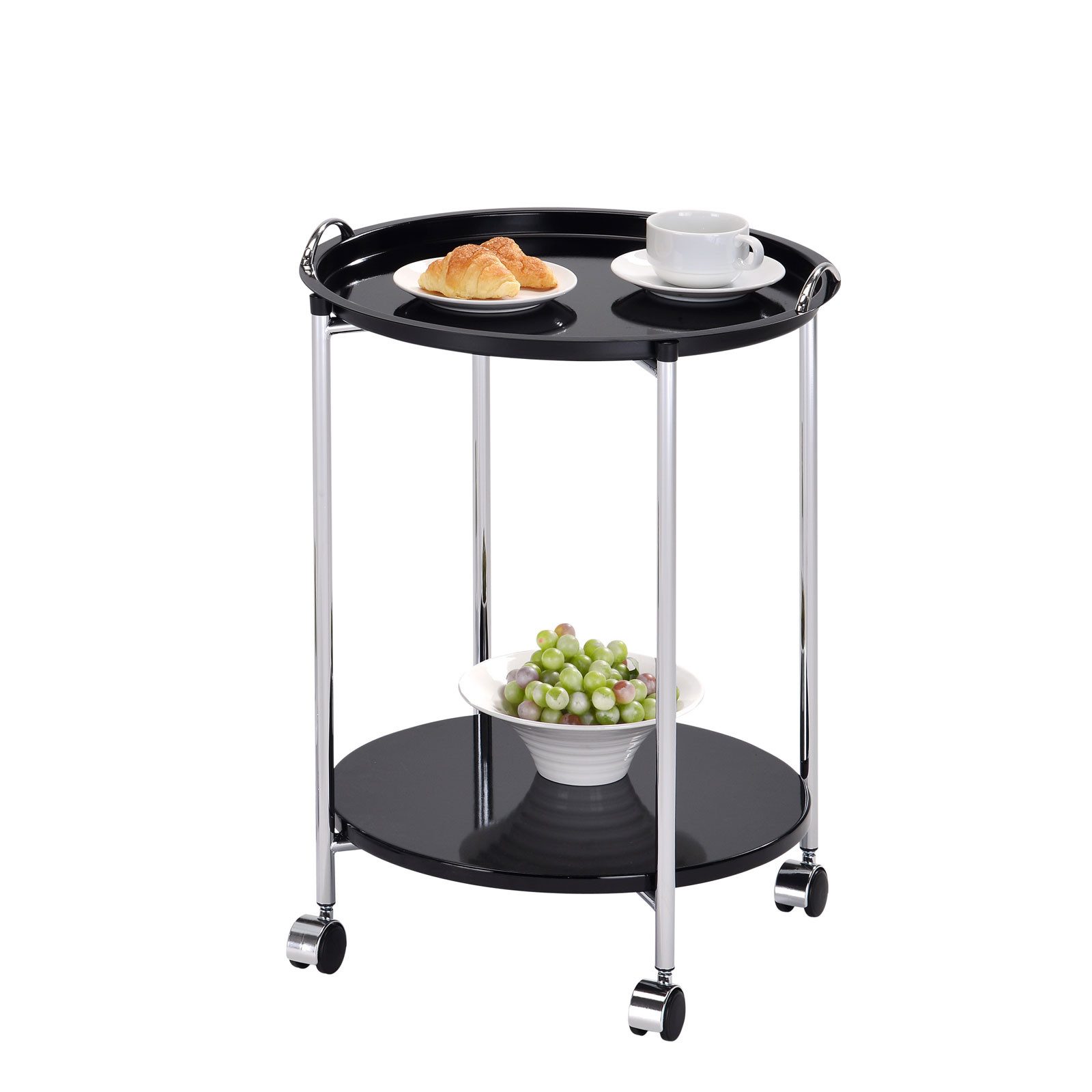 Der Servierwagen ist nicht nur funktional, sondern auch benutzerfreundlich. Dank der zwei Griffe am Tablett lässt sich dieser leicht abnehmen und wieder anbringen, was die Bedienung besonders komfortabel macht. Die stabile Konstruktion sorgt dafür, dass der Wagen auch bei voller Beladung sicher steht und leicht zu manövrieren ist.