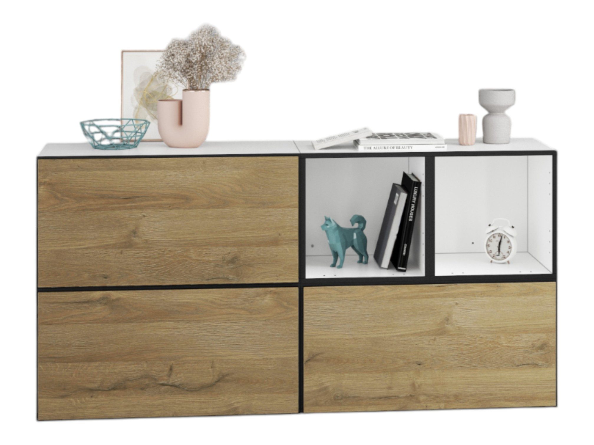 Dank des modularen Aufbaus lassen sich die Schränke sowohl als harmonisches Set als auch einzeln nach Wunsch anordnen. Das flexible Baukastensystem ermöglicht zudem, Das Sideboard jederzeit mit weiteren Elementen zu erweitern und perfekt an Ihre Wohnsituation anzupassen.