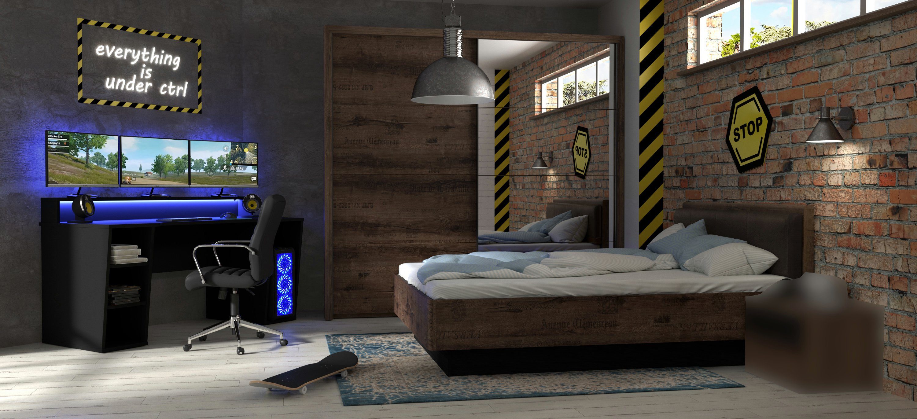 Ausführung | Gaming Tisch + Bett + Schwebetürenschrank |