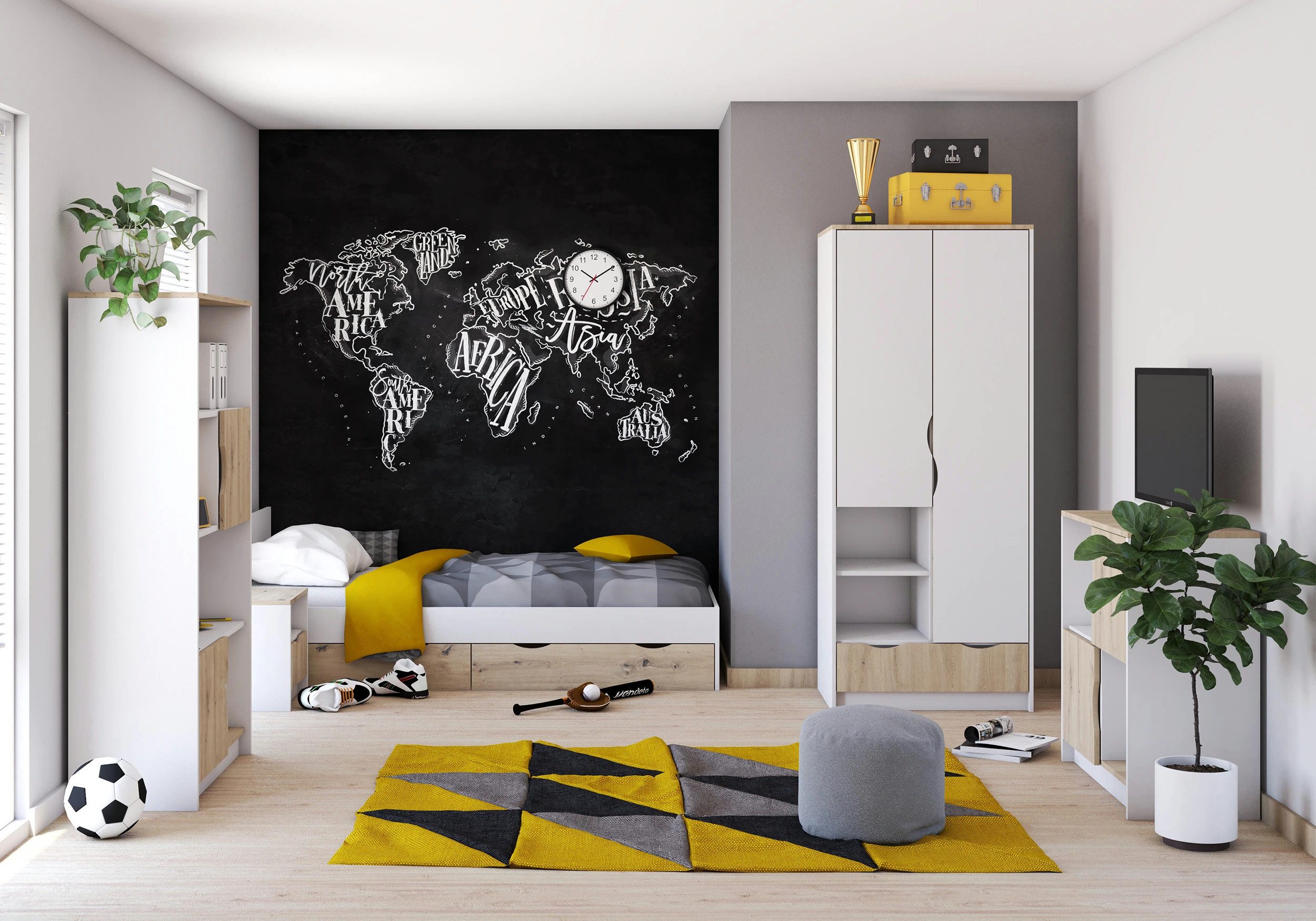 Das Jugendzimmer Zamiro in Weiß überzeugt mit seinem zeitlosen Design in Weiß und Artisan Eiche, hochwertigen Materialien und cleverer Funktionalität. Schaffen Sie eine gemütliche Umgebung zum Schlafen, Lernen und Entspannen.