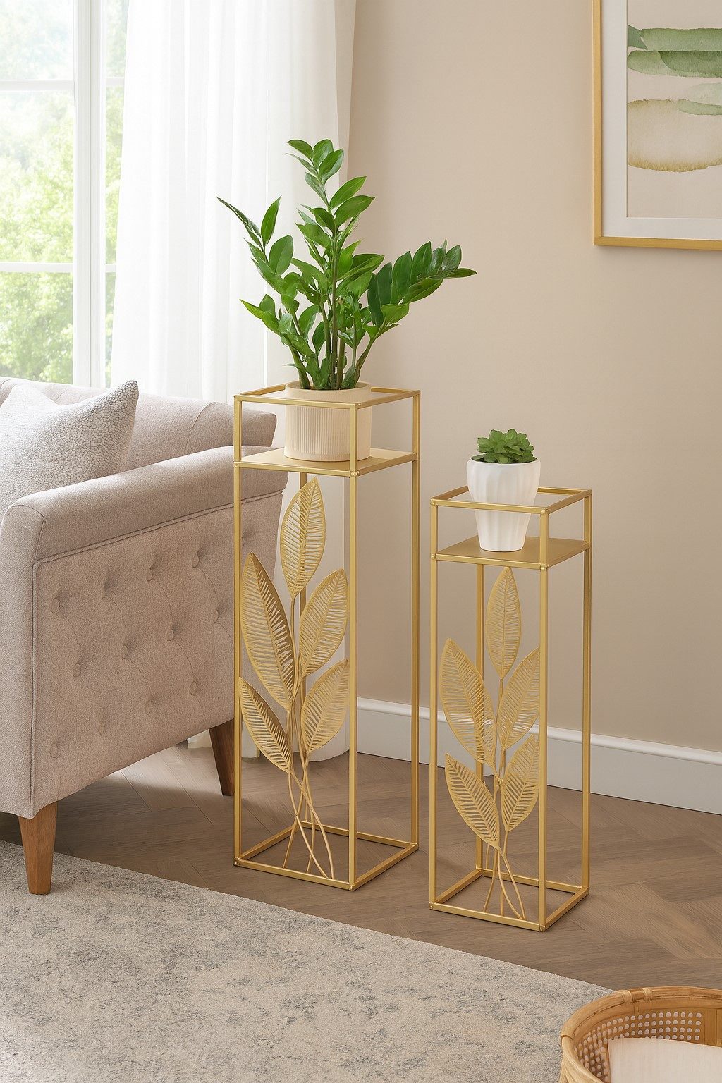 Ob im Wohnzimmer, Flur oder Wintergarten – dieses dekorative Pflanzenständer-Set sorgt für stilvolle Wohnmomente und ist ein echter Blickfang in jeder Umgebung.