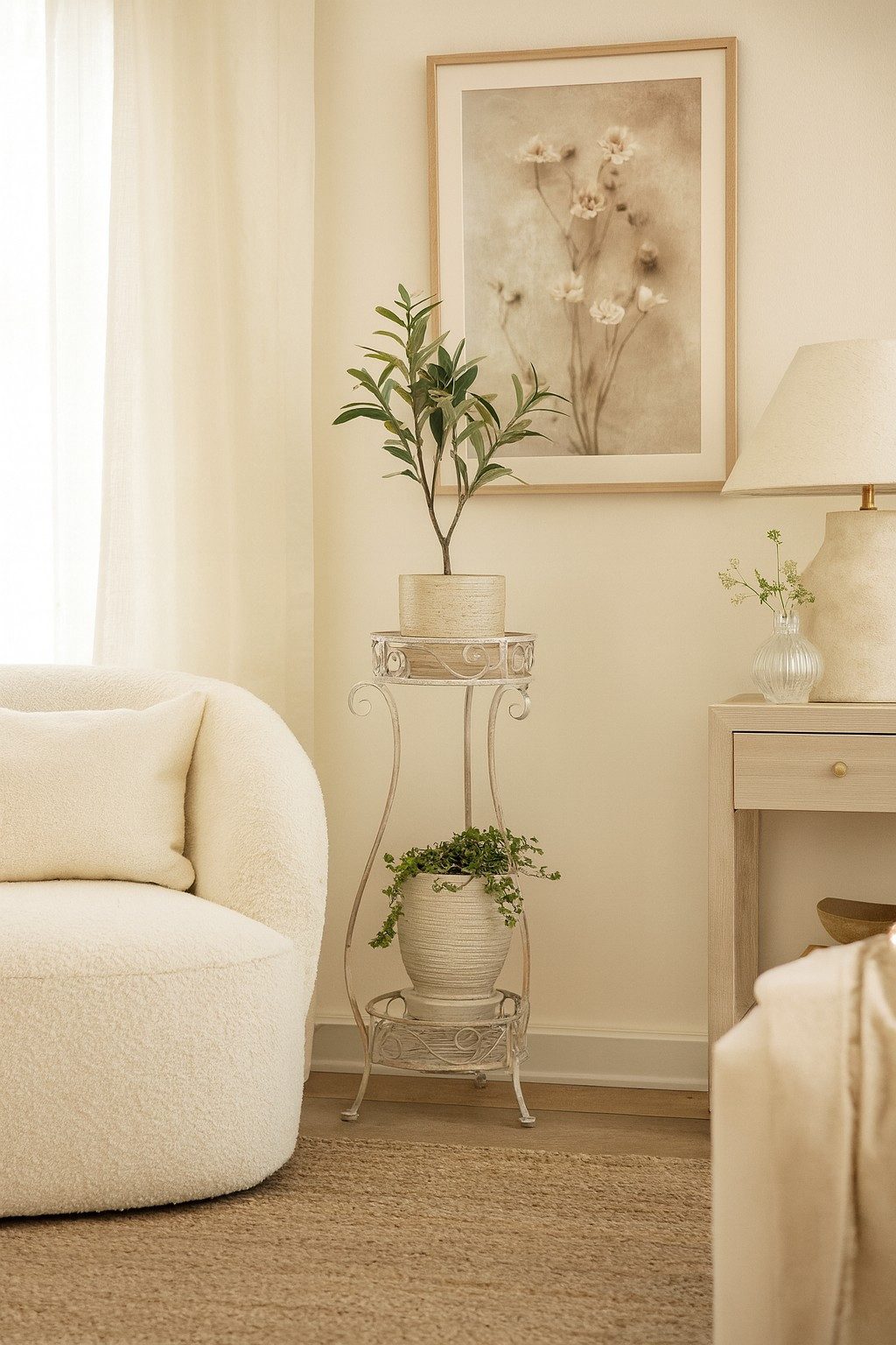 Ergänzende Maßangaben | Maße ca. cm: Durchmesser 30 cm x Höhe ca. 77 cm. Stellhöhe zwischen den Böden ca. 53 cm |