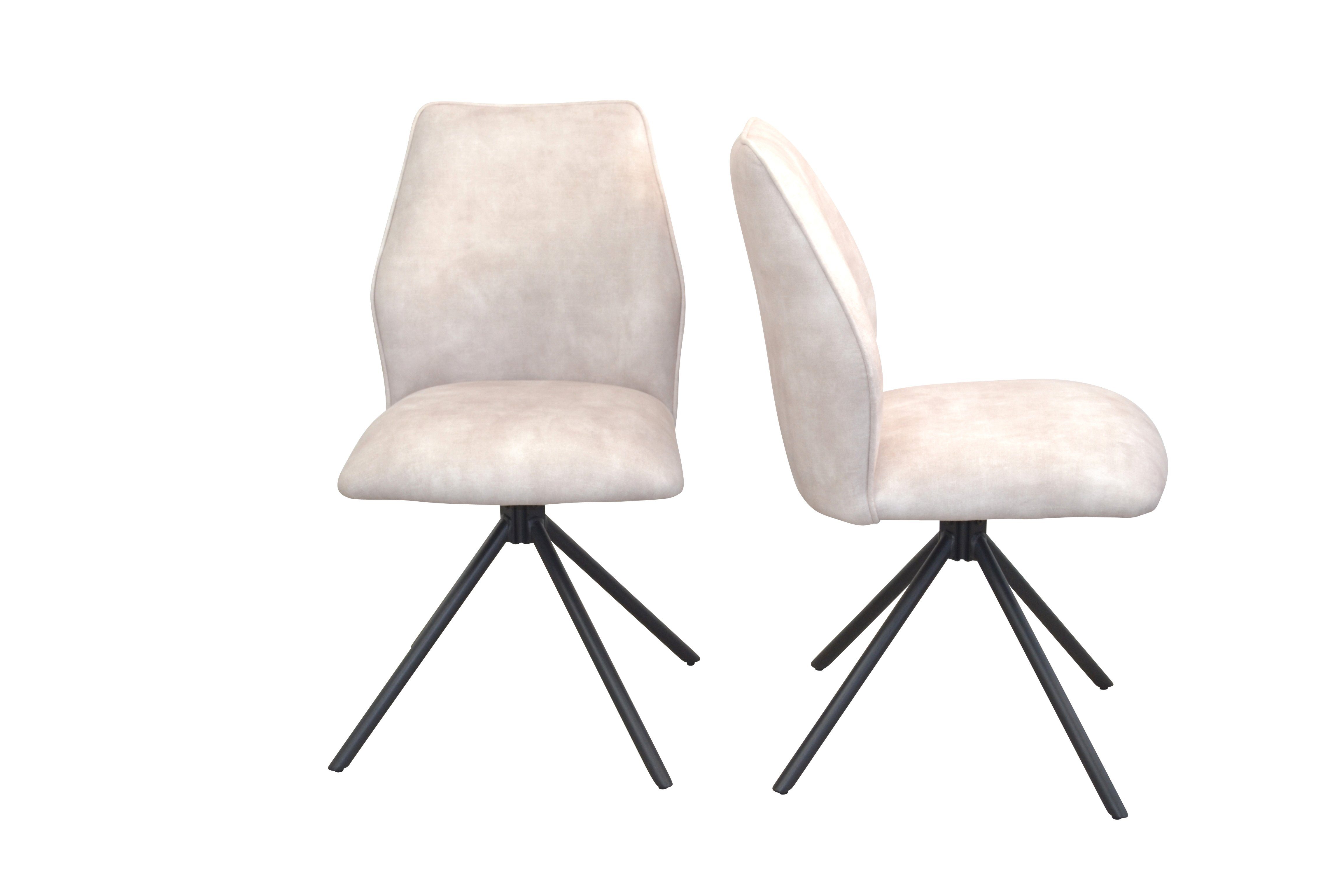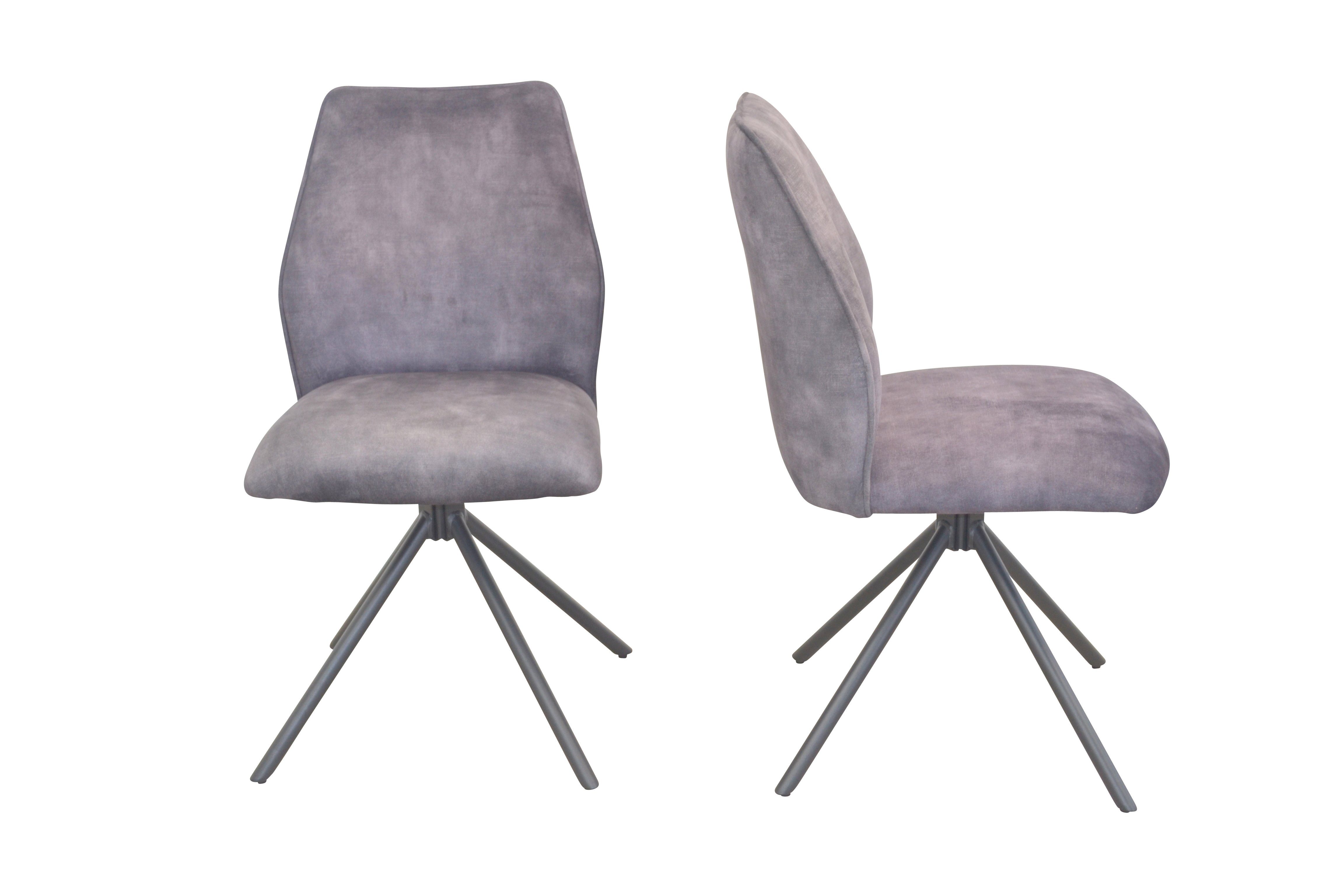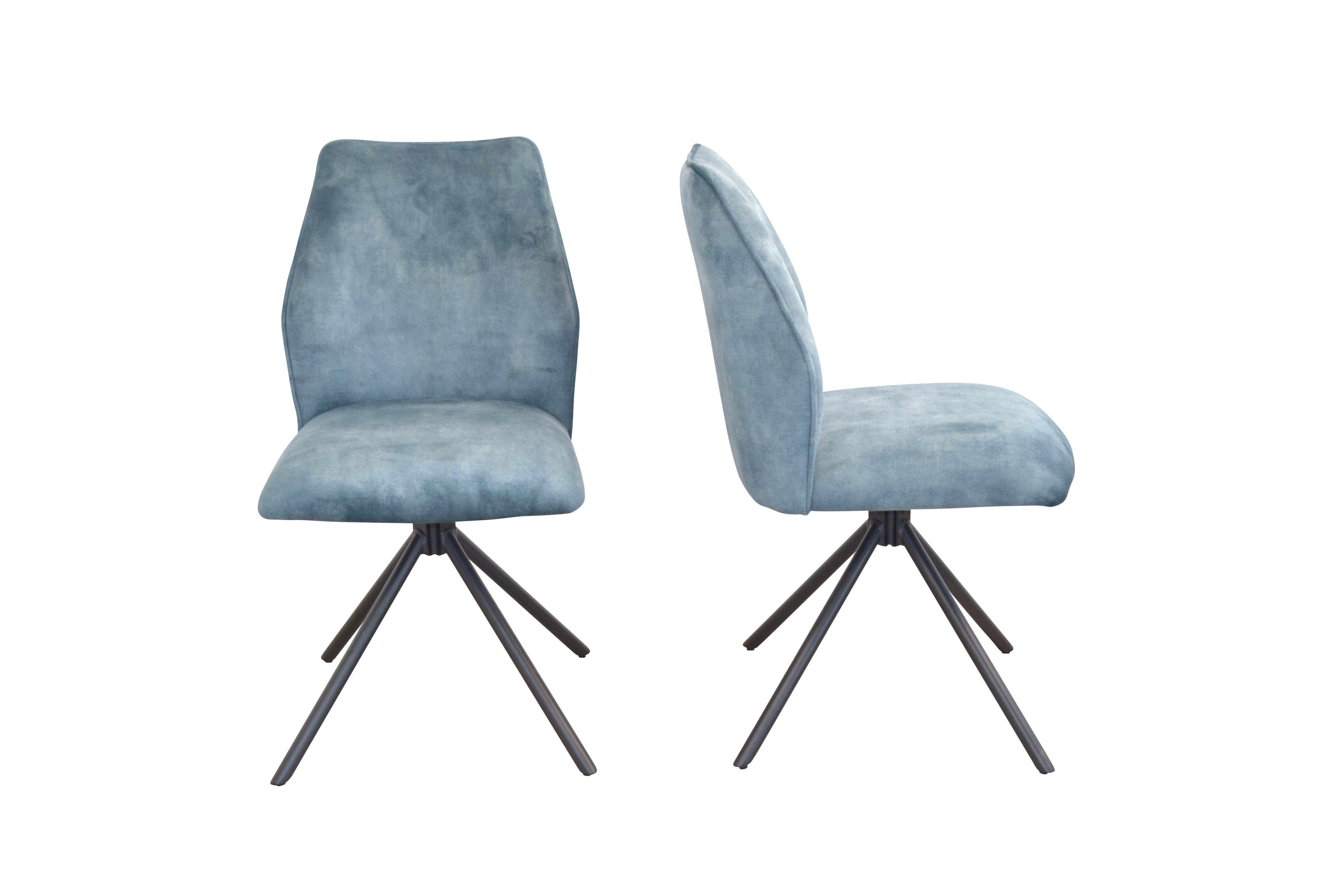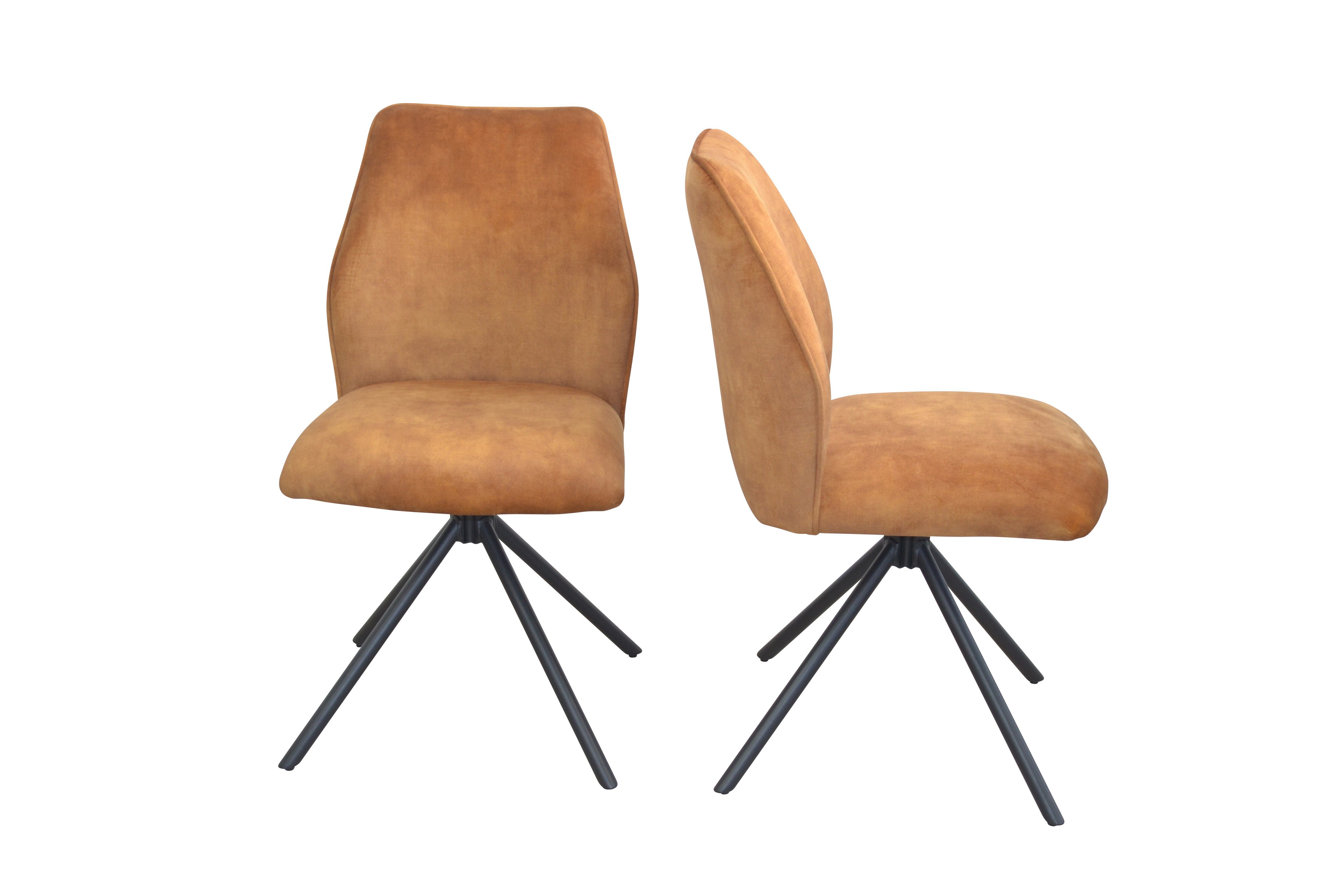 Moderner, hochwertiger Drehstuhl mit einem stabilen Metallgestell, schwarz pulverbeschichtet. Sitz- und Rückenflächen komplett schaumstoffgepolstert und mit einem attraktiven Vintage-Stoffbezug in Velour-Samtoptik (100% Polyester), unifarben, bezogen. Sitzfläche mit Drehfunktion (90° drehbar nach rechts und links) und mit Memoryfunktion (Sitzschale stellt sich automatisch wieder in Ursprungsstellung ein). Lieferbar in 4 attraktiven, trendigen Farben. Im Lieferumfang sind 2Stühle zur Selbstmontage, inklusive Aufbauanleitung. Maße ca. cm: (B/H/T) 50/88/60. Sitzhöhe ca. 50 cm, Sitzbreite ca. 46 cm, Sitztiefe ca. 44 cm.
