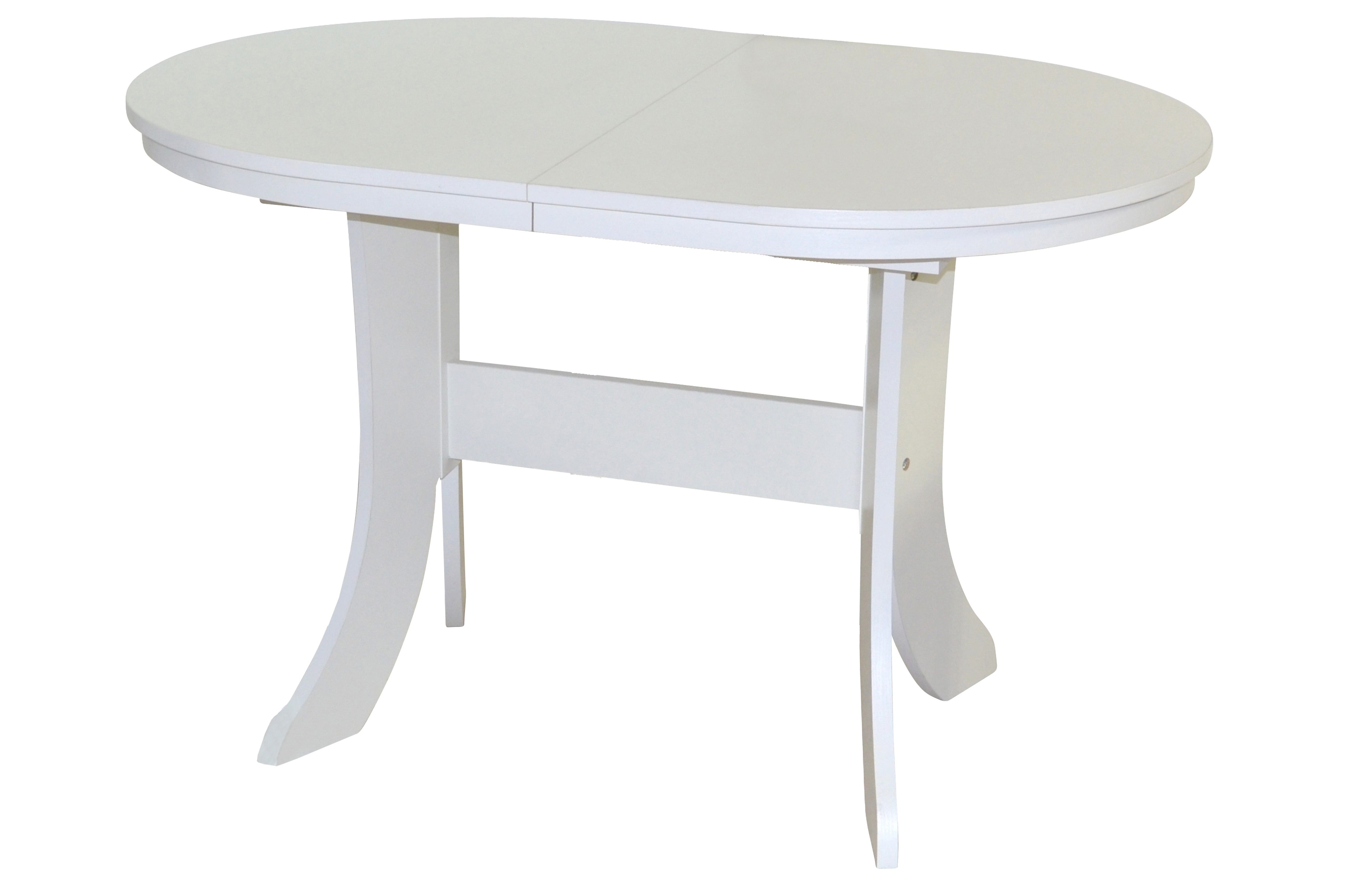 Die ovale Tischplatte lässt sich bei Bedarf ganz einfach durch eine innenliegende Einlegeplatte um ca. 40 cm erweitern. Perfekt für Familienfeste, Besuch oder das Sonntagsessen mit Freunden. Erhältlich in drei zeitlosen Dekorvarianten: Buche-Nachbildung, Nussbaum-Nachbildung und uni Weiß.