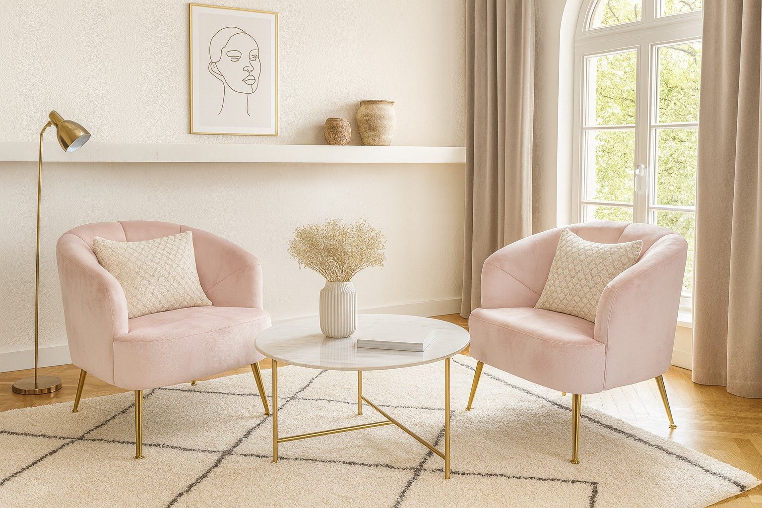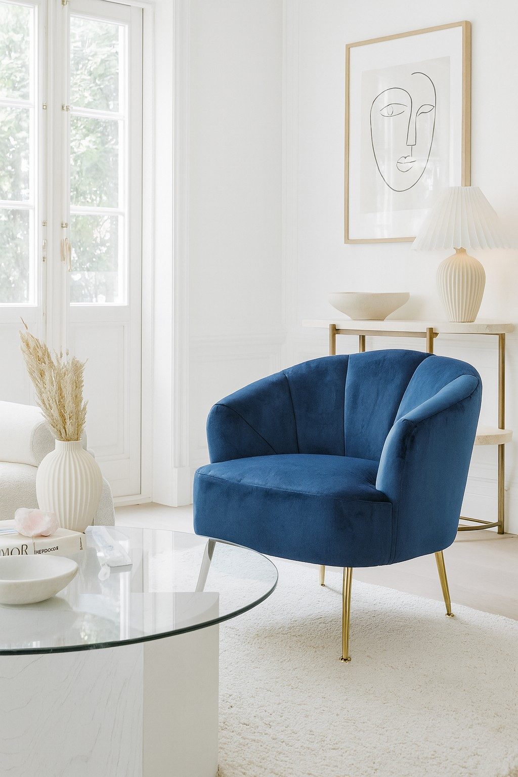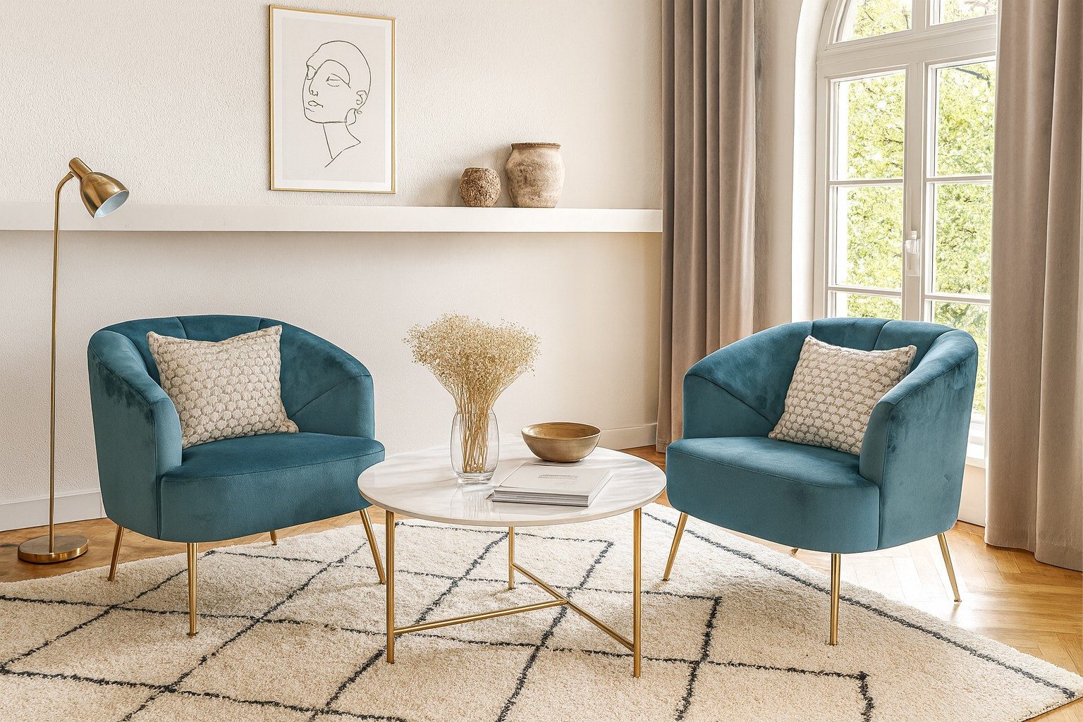 Dieser hochwertig verarbeitete Sessel kombiniert elegantes Design mit hohem Komfort. Die großzügige Sitzschale (Holz/Hardfaser/MDF) ist vollflächig schaumstoffgepolstert und mit einem attraktiven Stoffbezug in Samtoptik (100% Polyester) bezogen. Erhältlich in 3 Farben – ideal für Wohnzimmer, Lounge oder Leseecke.
