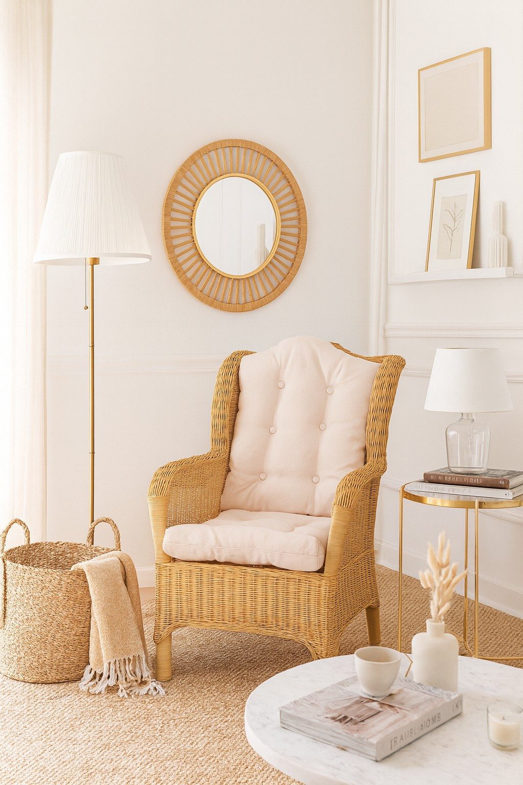 Lieferumfang: 1x Rattansessel, Sitz- & Rückenkissen.