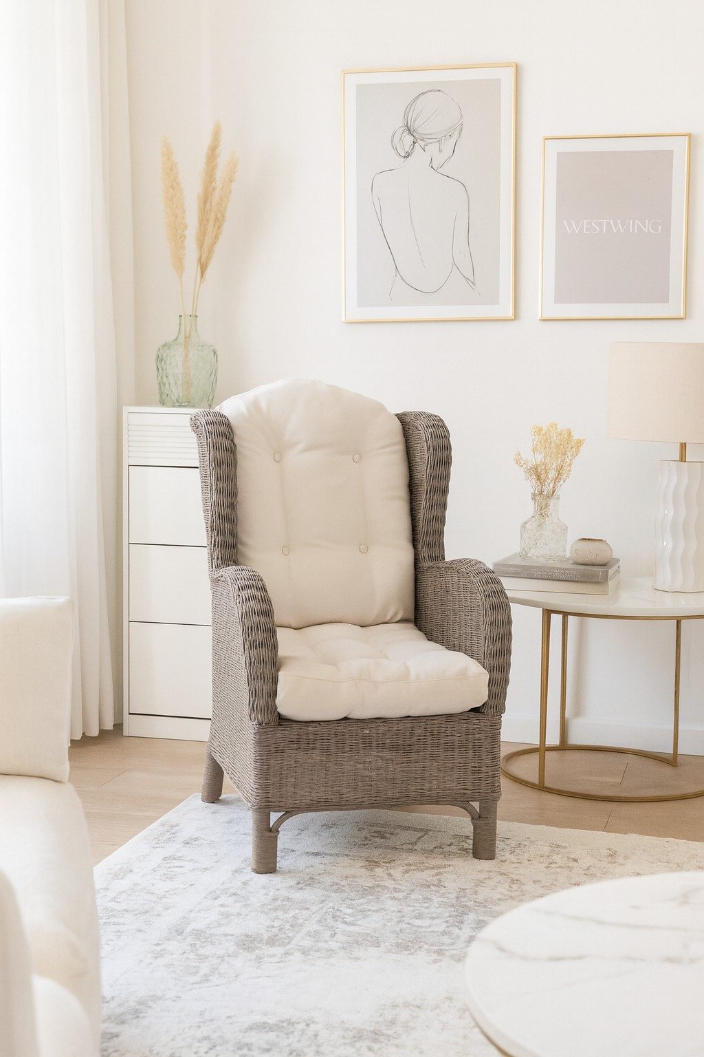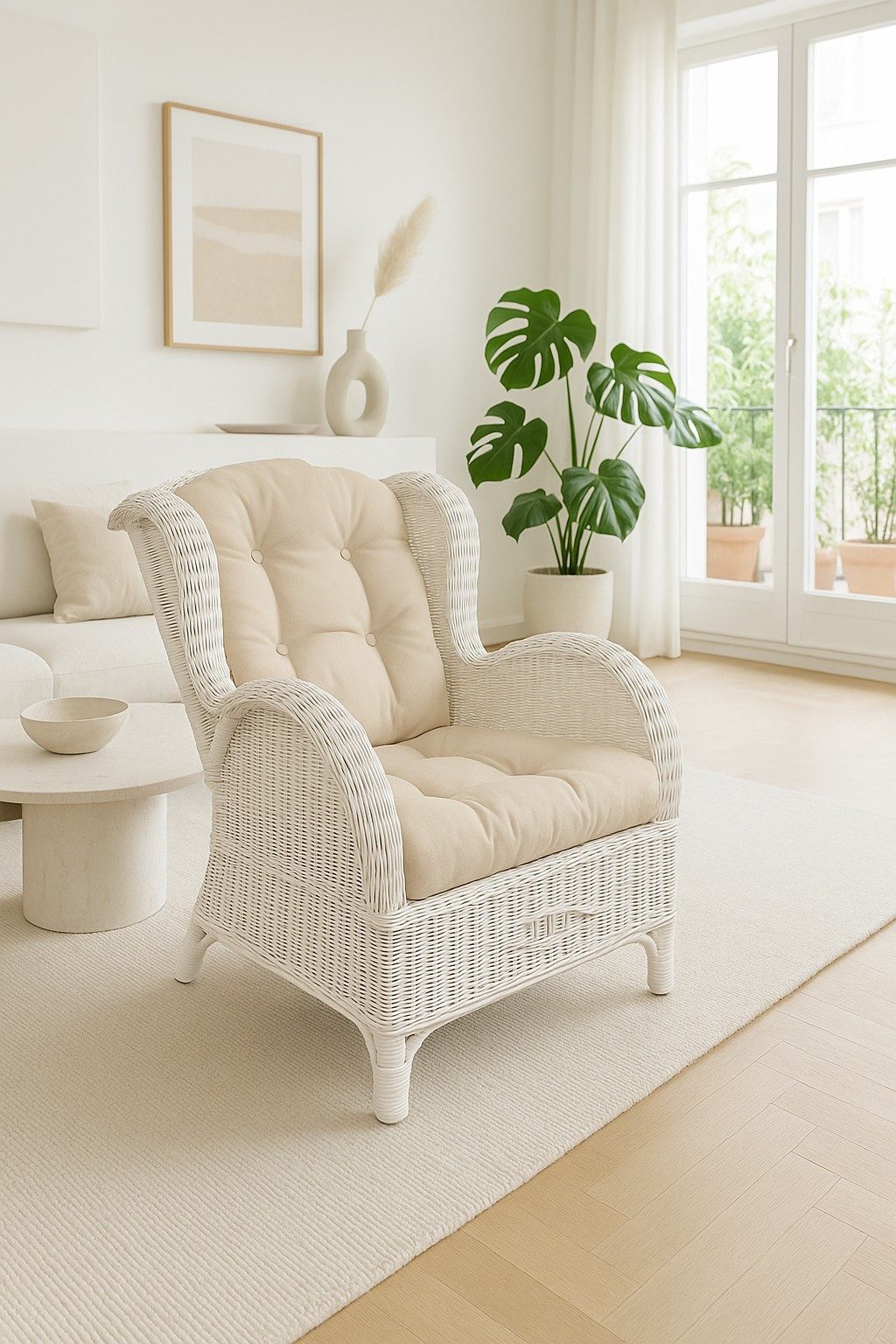 Hinweis Lieferumfang | Rattansessel mit einem Sitzkissen und einem Rückenkissen |