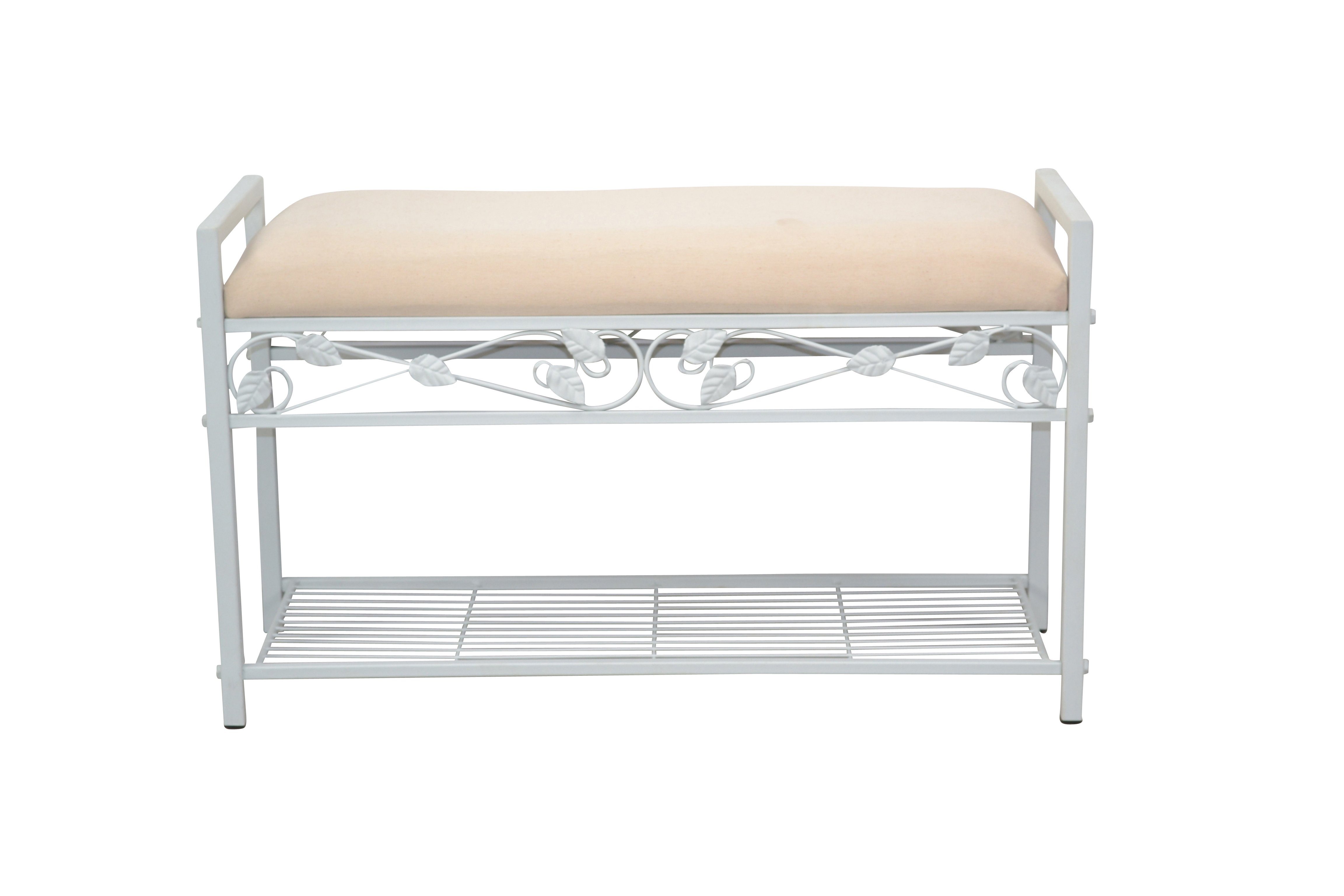 Romantische Sitzbank aus Metall mit einer pflegeleichten Oberfläche, wahlweise in cremeweiß und schwarz lieferbar, mit reichlich Verzierung unter der Sitzfläche. Unten ein Metall-Gitterboden. Inklusive bequemen, schaumstoffgepolsterten Sitzkissen mit einem cremefarbenen Stoffbezug (65% Baumwolle/35% Polyester) bezogen. Lieferung der Sitzbank erfolgt zur Selbstmontage, inklusive Aufbauanleitung. Maße ca. cm: (B/H/T) 80/47/30. Sitzhöhe ca. 45 cm. Belastbar bis ca. 100 kg.
