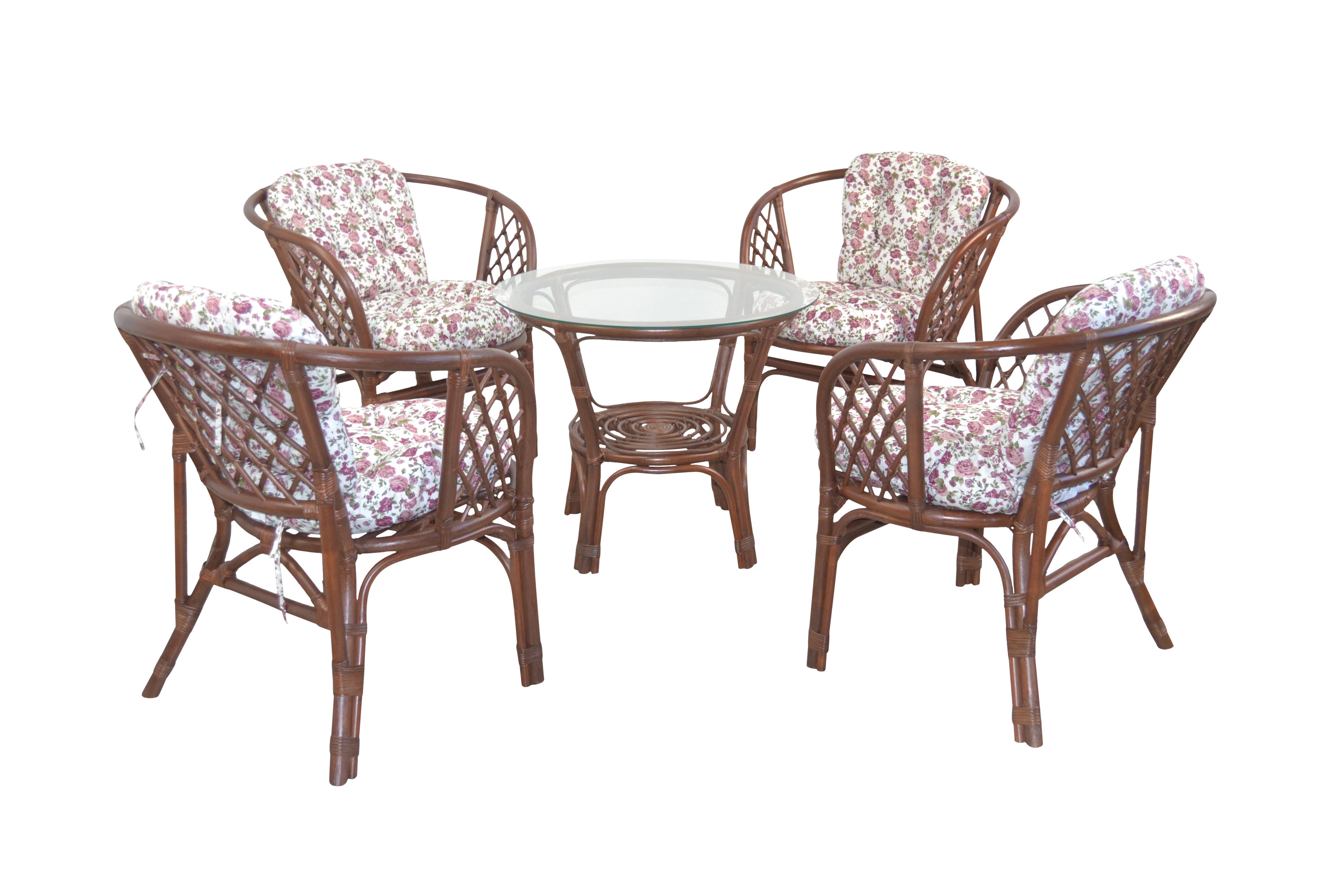 Lieferumfang | 4 Sessel inklusive Sitz-/Rückenkissen, 1 Tisch |