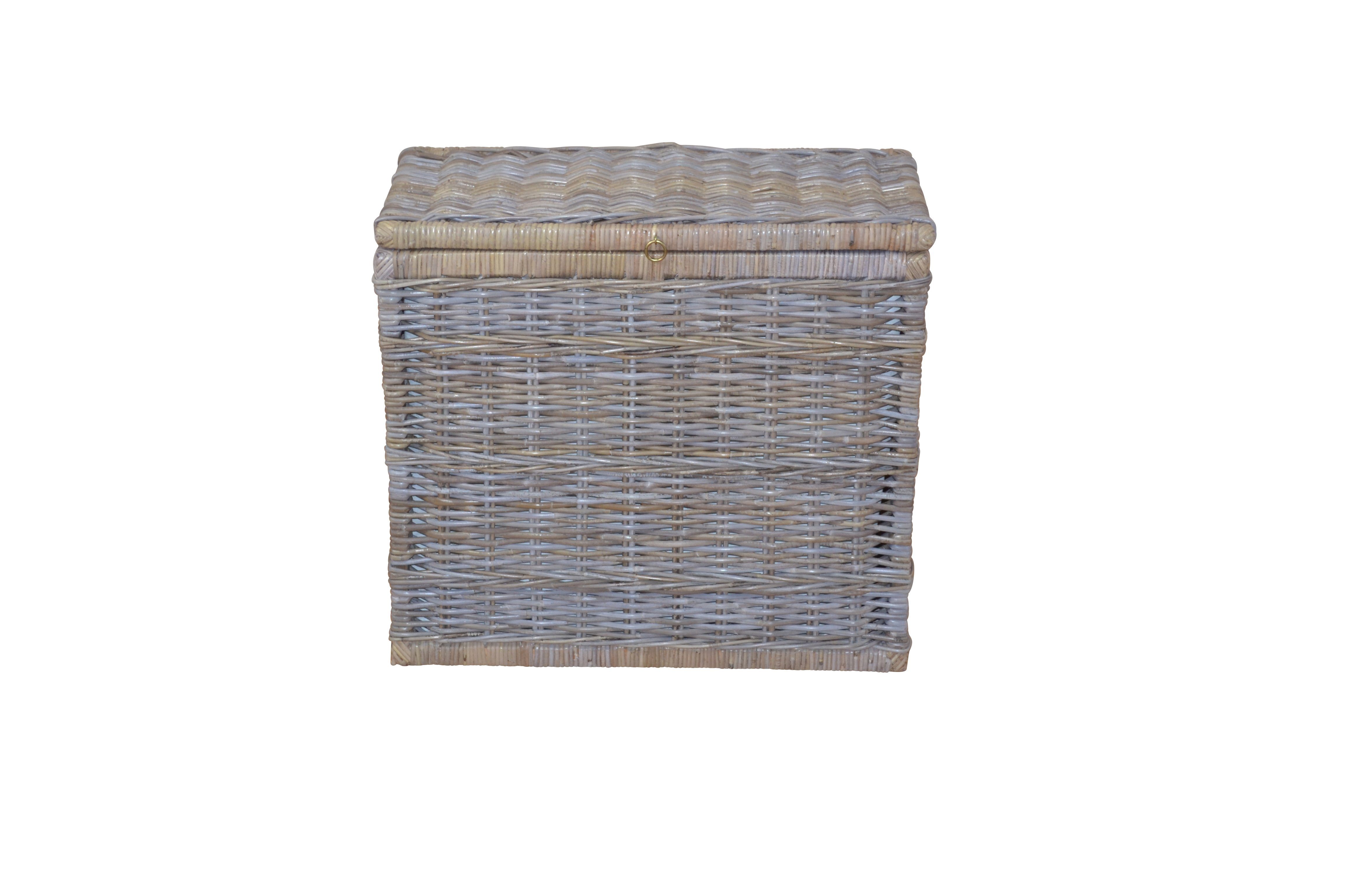 Praktischer Wäschekorb komplett aus Rattan, mit Kubu-Rattanrohr aufwändig handgeflochten. Rechts/links jeweils einen eingearbeiteten Griff. Deckel aufklappbar darunter zwei separate Einteilungen bzw. Stauraum für ihre Wäsche. Mit einem herausnehmbaren, cremefarbenen Stoffeinsatz (100% Polyester) ausgestattet. Die Oberflächen ist lackiert. Deckel mit Metallscharnieren und 2 Metallkettchen kombiniert. Lieferung erfolgt montiert, einfach nur auspacken. Maße ca. cm: (B/H/T) 69/61/37. Stauaum-Innenmaße ca. cm: (B/H/T) 2x 28/51/28.