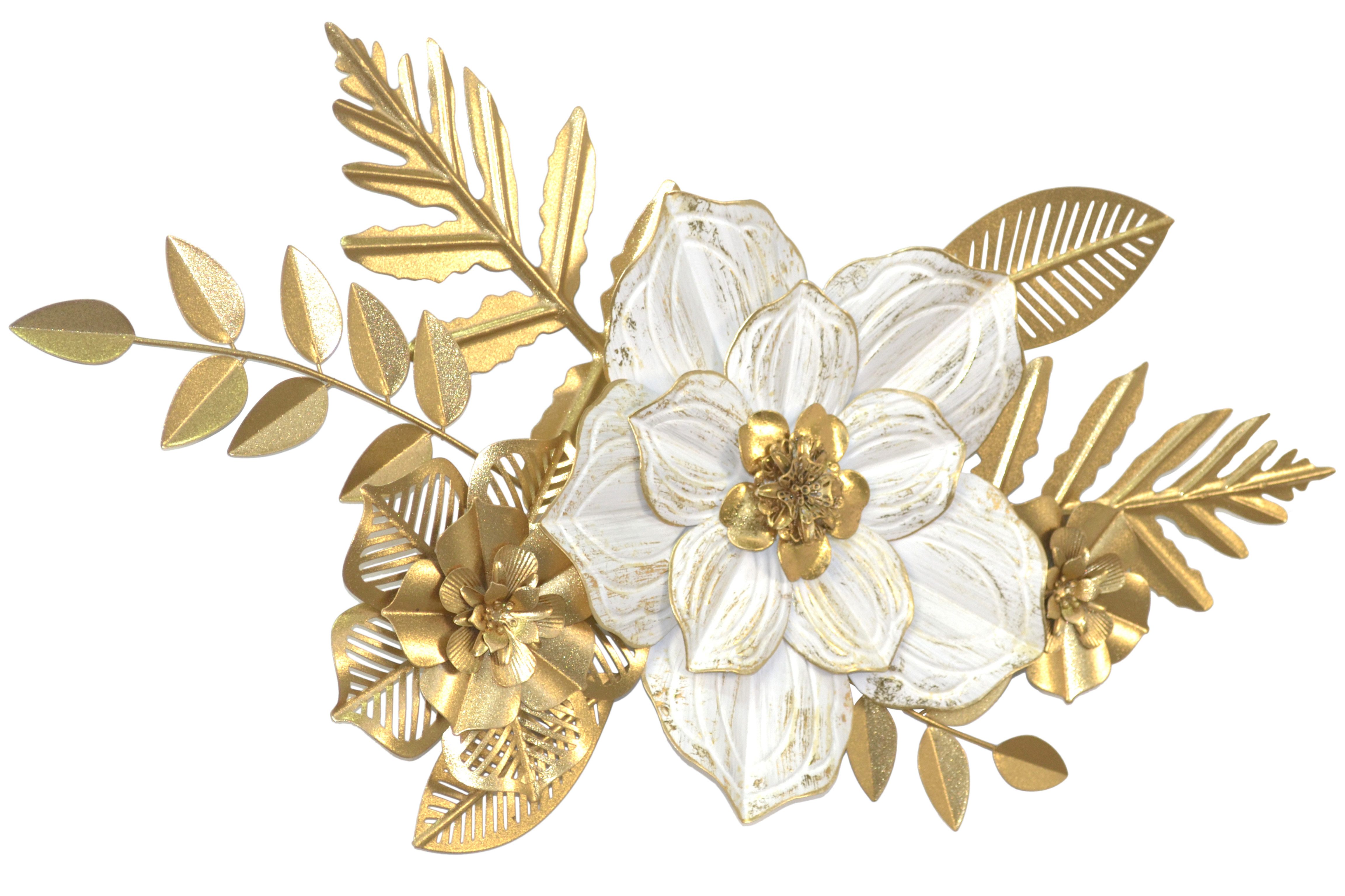 Bringen Sie stilvolle Eleganz und romantisches Flair in Ihre vier Wände mit diesem dekorativen Wandobjekt aus Metall. Das Blumengebinde überzeugt mit detailverliebtem Design in sanften Gold- und Creme-Tönen. Die lackierte Oberfläche verleiht dem Objekt eine edle Ausstrahlung und macht es gleichzeitig pflegeleicht.