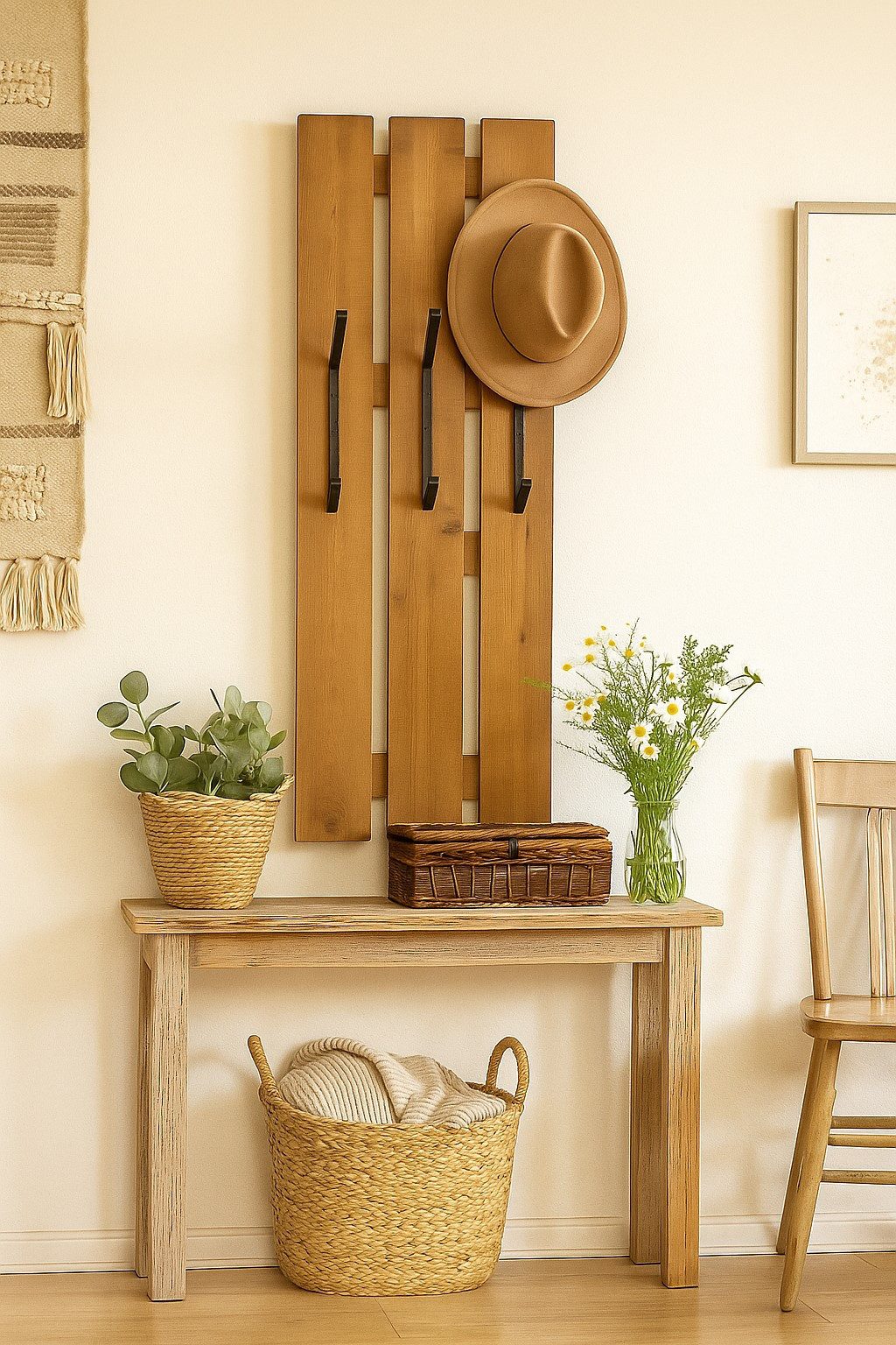 Setzen Sie mit dieser dekorativen Holzgarderobe stilvolle Akzente und schaffen Sie gleichzeitig Ordnung in Ihrem Zuhause – natürlich, zeitlos und praktisch.