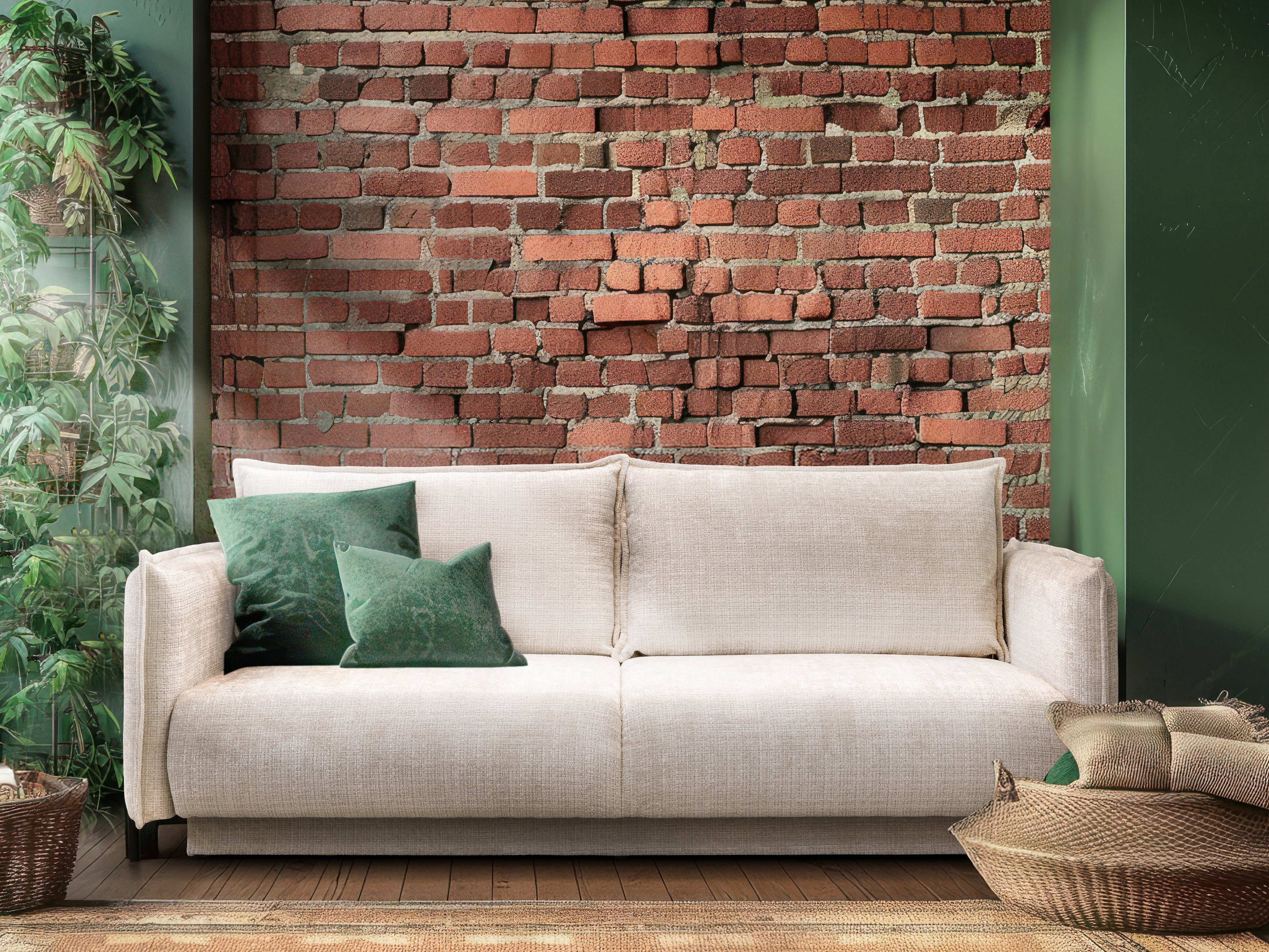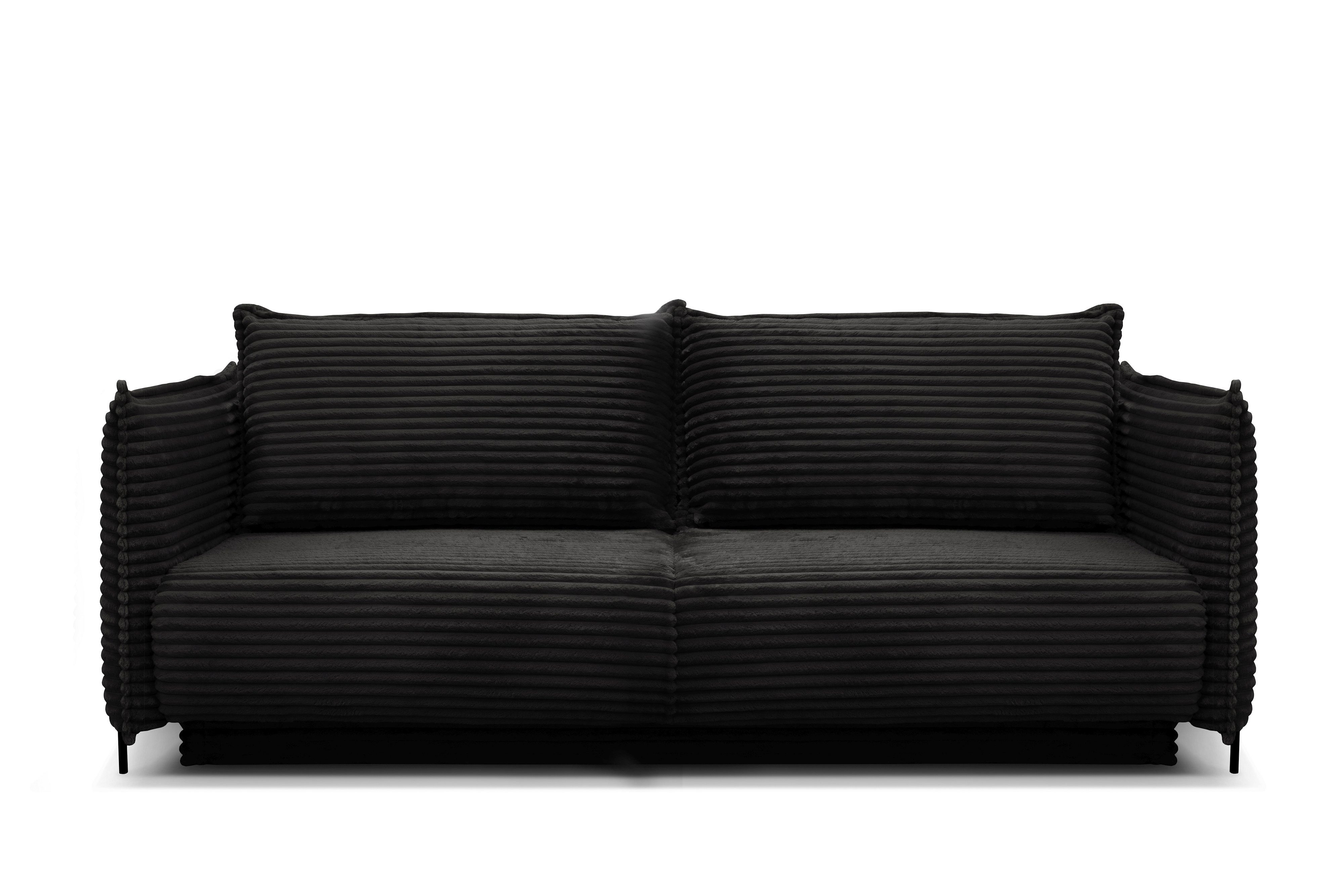 Ein integrierter Bettkasten bietet praktischen Stauraum. Die großzügige Schlaffunktion mit einer Liegefläche von 198 × 145 cm macht das Sofa ideal für Gäste oder den täglichen Gebrauch.