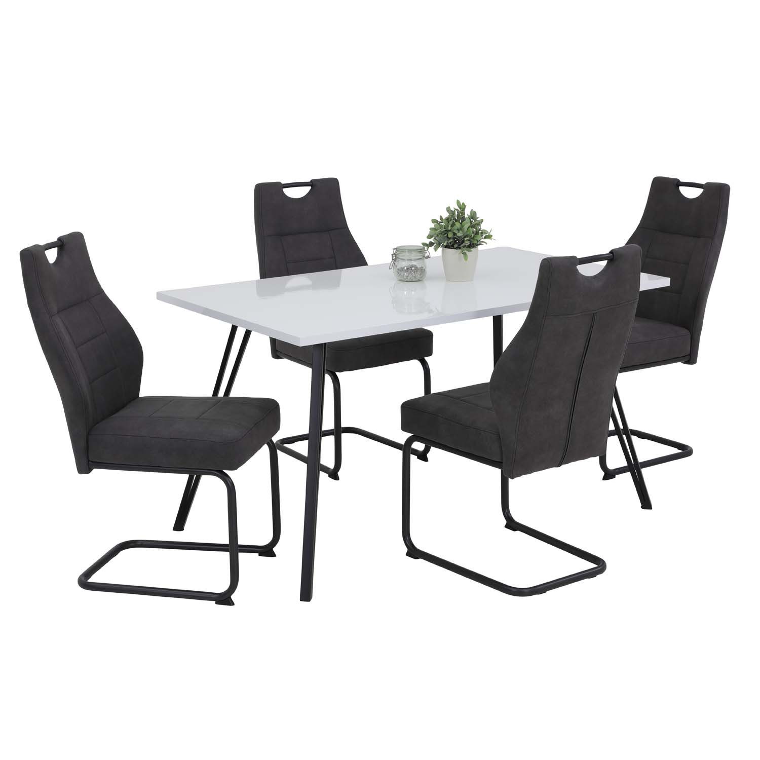 1x 5-tlg. Essgruppe Tiara - Tisch Weiß, 4 Stühle Anthrazit