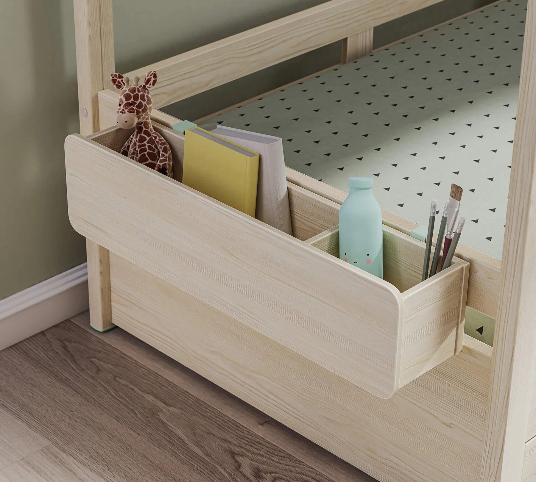 Ergänzen Sie Ihr Kinderzimmer mit dem praktischen Montes Bettregal von Cilek und schaffen Sie zusätzlichen Stauraum für die Lieblingsdinge Ihres Kindes. Die clevere Размер und die sichere Befestigung am Bett sorgen für Ordnung und Übersicht. Das Regal passt ideal zu den Betten der Montes Serie und fügt sich harmonisch ins Gesamtbild ein. Das Regal wird einfach am Bett befestigt – ohne Bohren oder Schrauben.