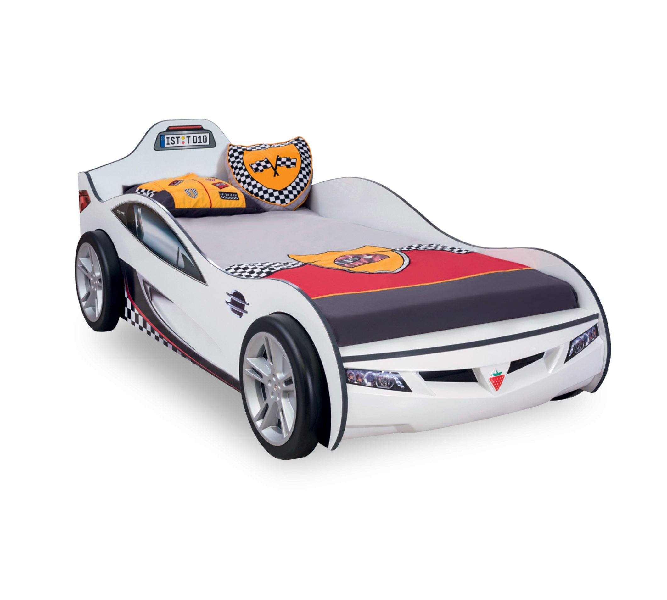 Das Cilek COUPE Autobett in hellem Weiß verwandelt das Kinderzimmer in eine aufregende Rennstrecke der Fantasie! Mit einer großzügigen Liegefläche von 90 x 190 cm bietet dieses Bett nicht nur komfortablen Schlaf, sondern auch endlose Abenteuer für kleine Rennfahrer. Das Bett misst 109 x 80,5 x 208 cm (B/H/T) und besteht aus hochwertigem MDF-Holzwerkstoff, der für Langlebigkeit sorgt. Eine Spanplatte, die als Lattenrost dient, ist im Lieferumfang enthalten. Erleben Sie, wie das Cilek COUPE Autobett Stil und Komfort vereint und die Träume Ihrer Kinder auf faszinierende Weise beflügelt!