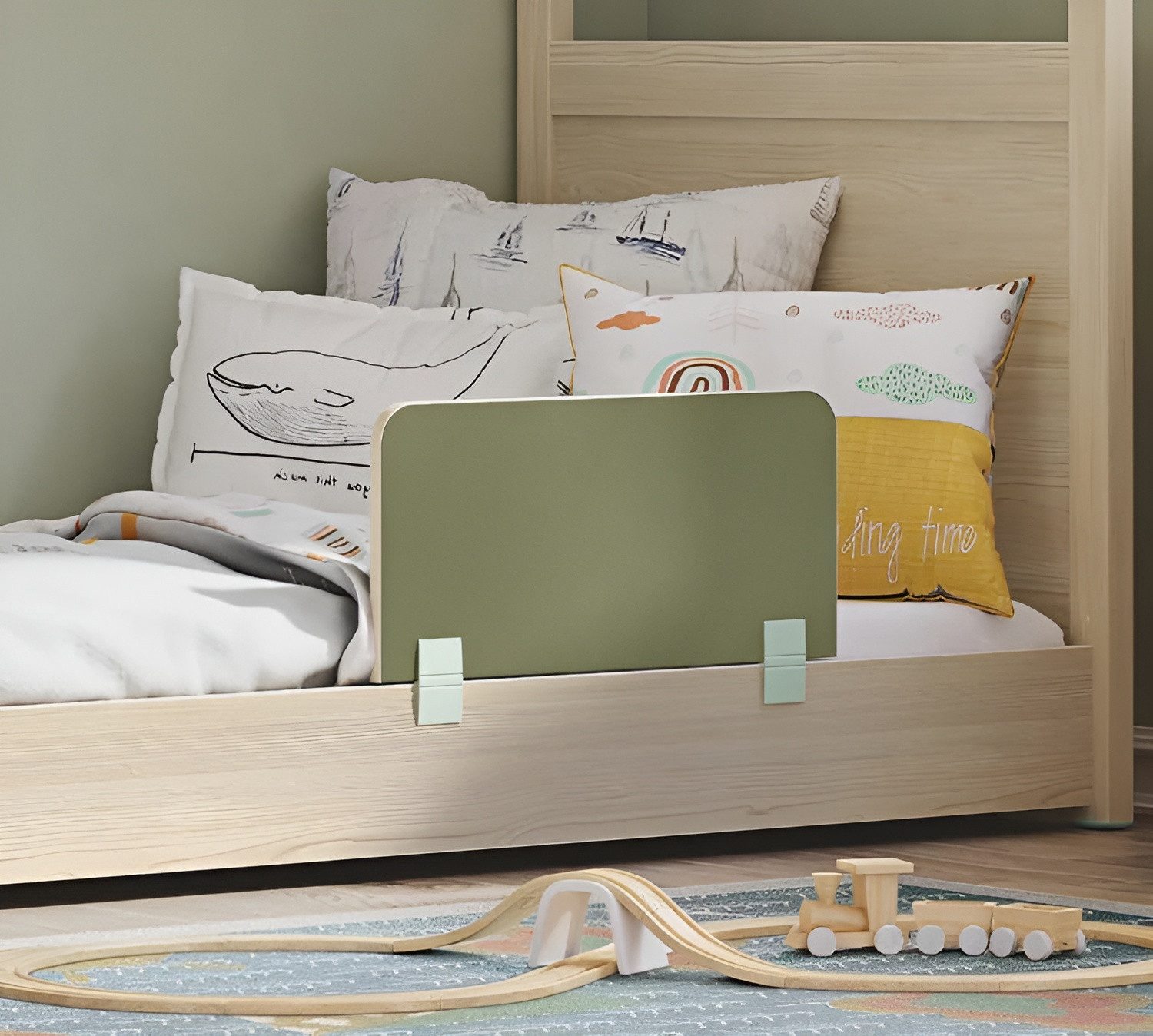 verhindert, dass das Kind aus dem Bett fällt