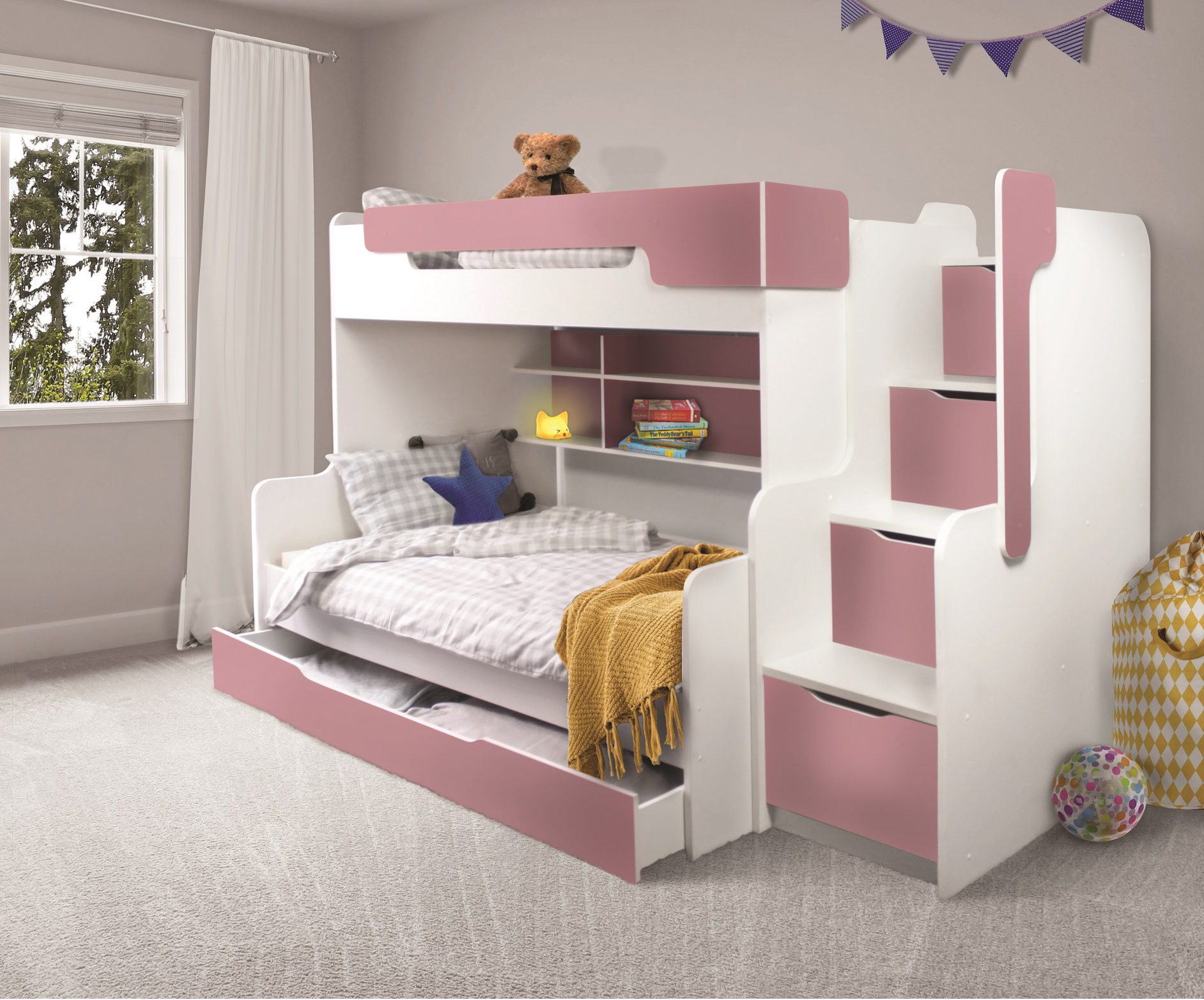 Etagenbett mit Treppenregal