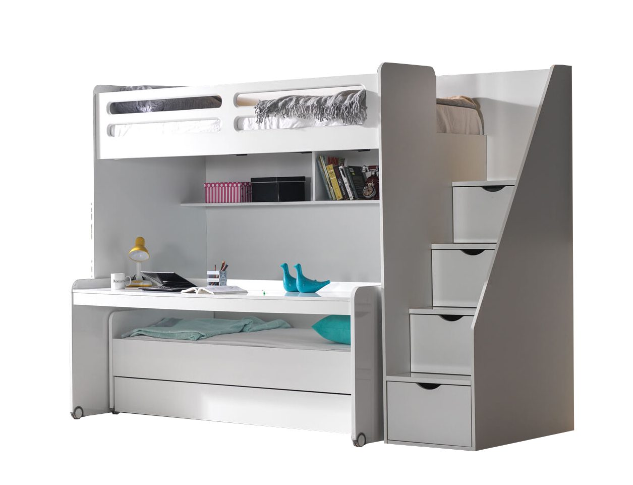 Hochbett mit 4 Stufen-Stauraumtreppe