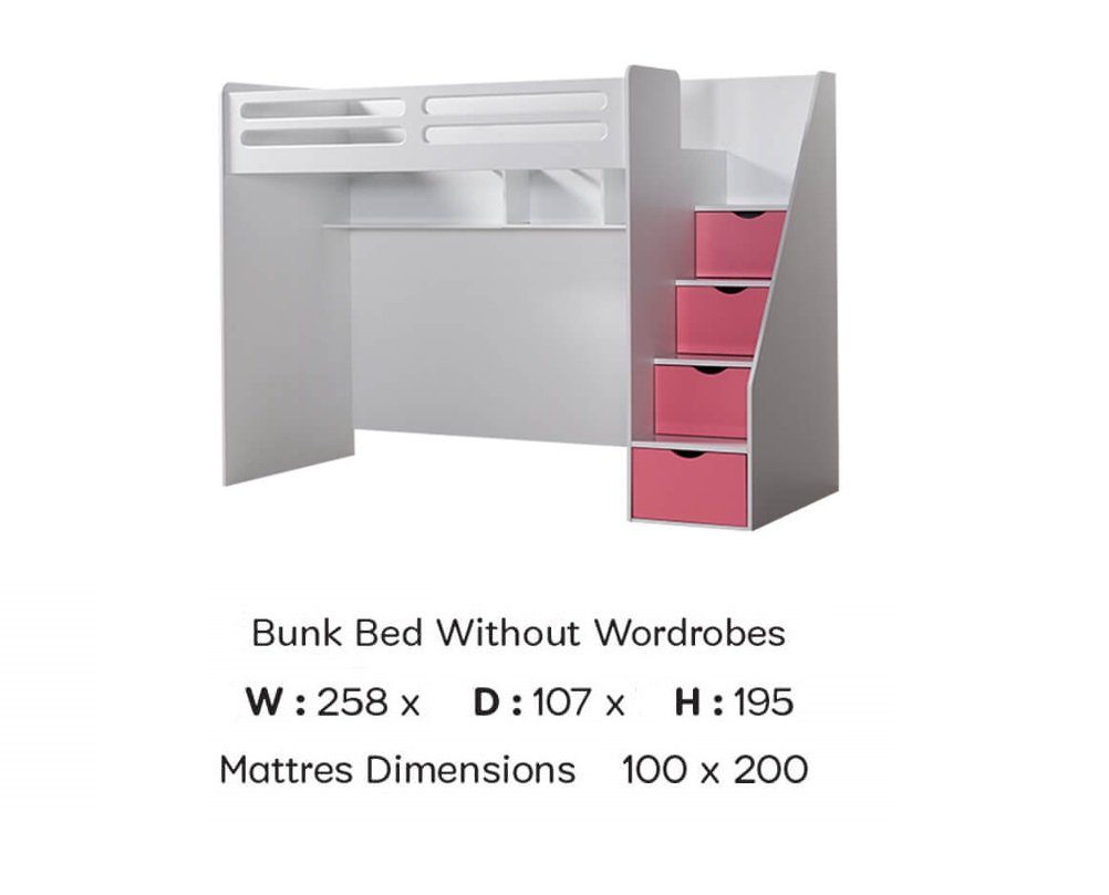 Eine elegante Lösung für das Hochbett SMART bietet die Treppe über die Ihr Kind sehr leicht ins Bett steigen kann. Unter den 4 Stufen befindet sich jeweils eine Schublade für Kuscheltiere oder Bettwäsche.