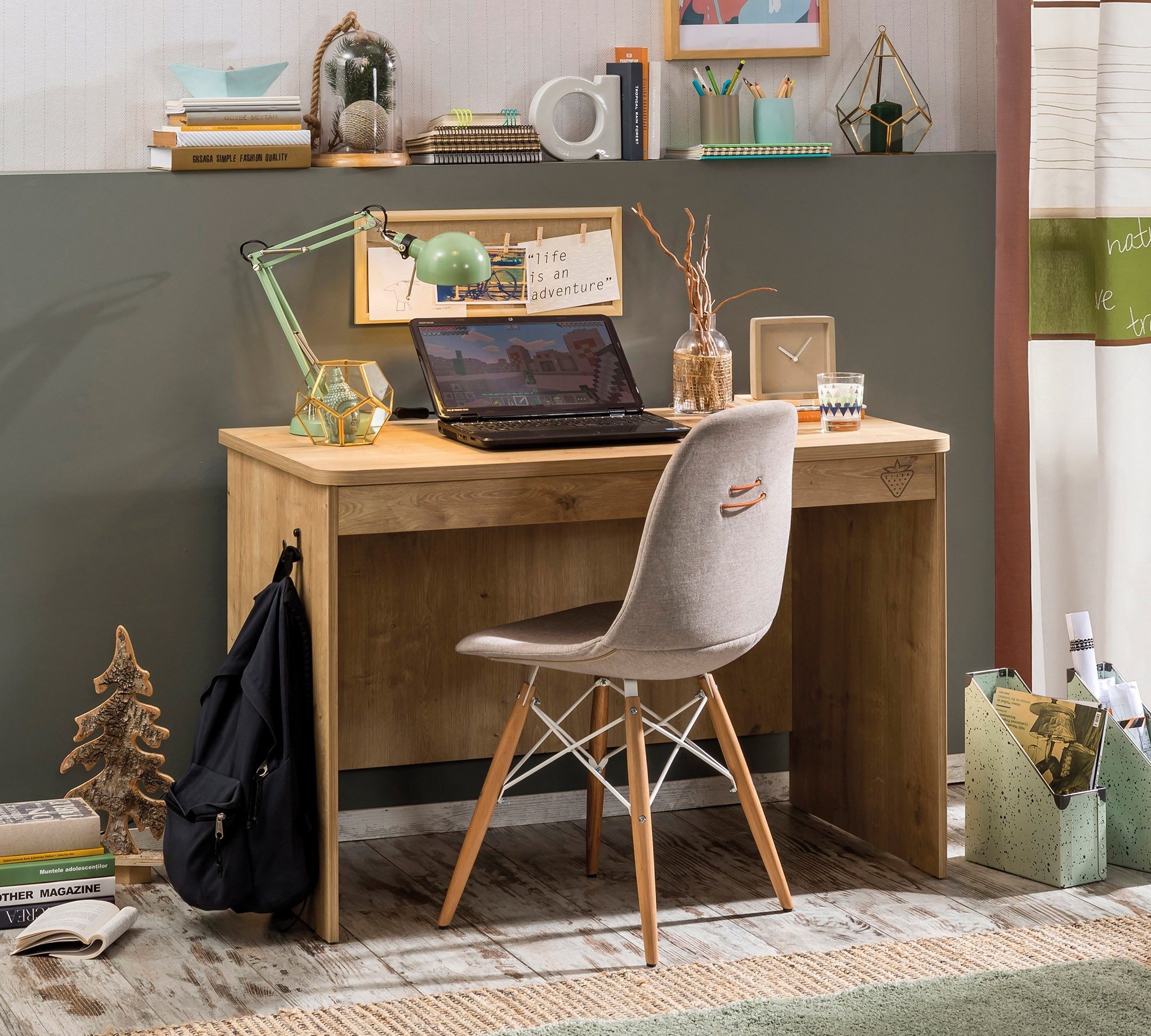 Entdecken Sie den stilvollen und funktionalen Schreibtisch "Mocha", die perfekte Ergänzung für Ihr Arbeitszimmer, Jugendzimmer oder Home-Office. Dieser moderne Schreibtisch mit 1 Schubkasten bietet nicht nur eine großzügige Arbeitsfläche, sondern auch praktische Aufbewahrungslösungen für ein organisiertes Arbeiten.
