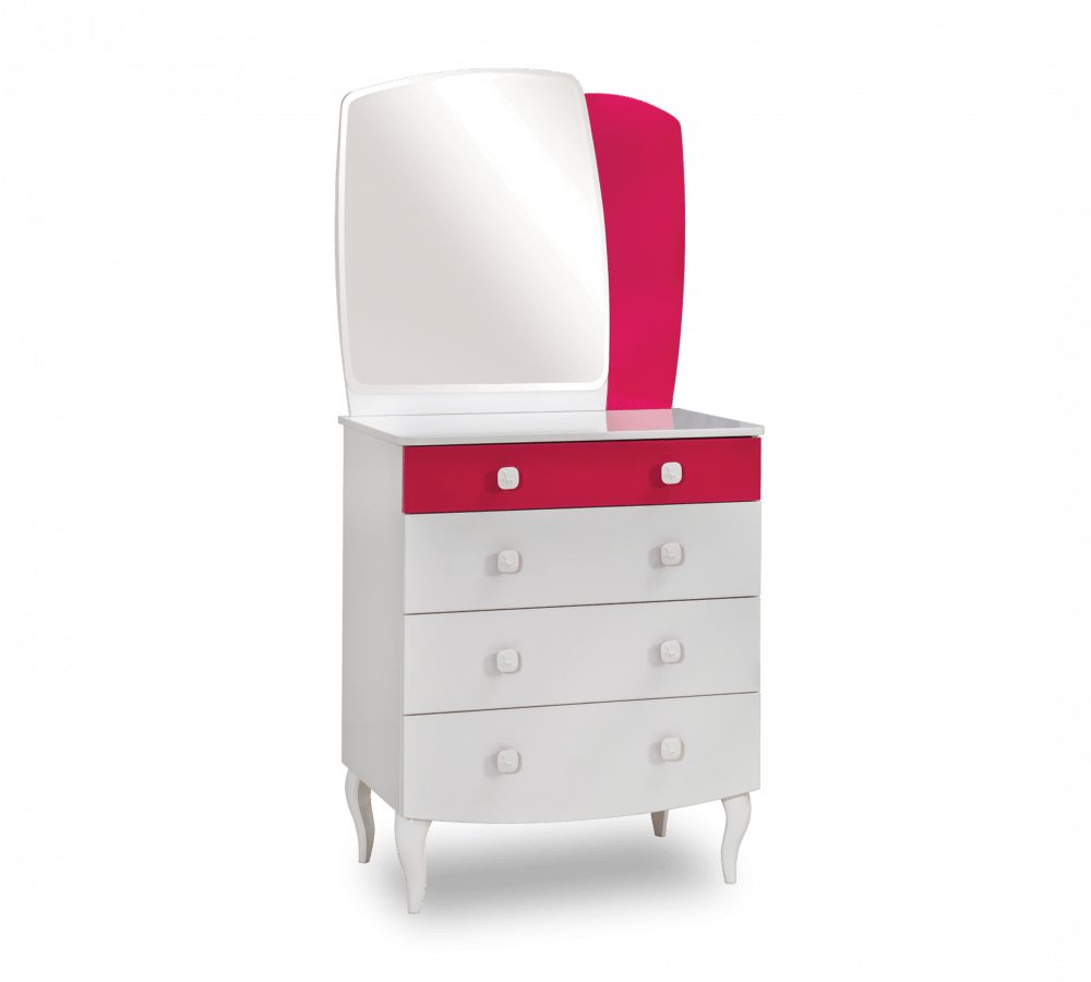 Ein Traum für Mädchen wurde mit diesem Modell designt. Im obersten Schubkasten der Kommode finden sich jede Menge kleine Fächer, die sich als idealer Aufbewahrungsort für Schmuck und sonstiges Всеrlei anbieten.