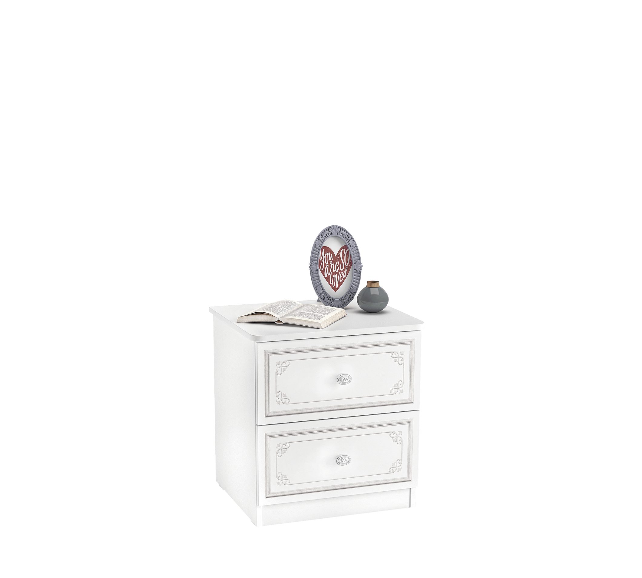 Nachtkommode SELENA GREY ist die perfekte ergänzung zu den Betten aus der Serie. Zwei Schubladen mit aufgedruckten Ornamenten in grau bieten genügend Stauraum um alle persönliche Gegenstände staubegeschützt aufzubewahren.
