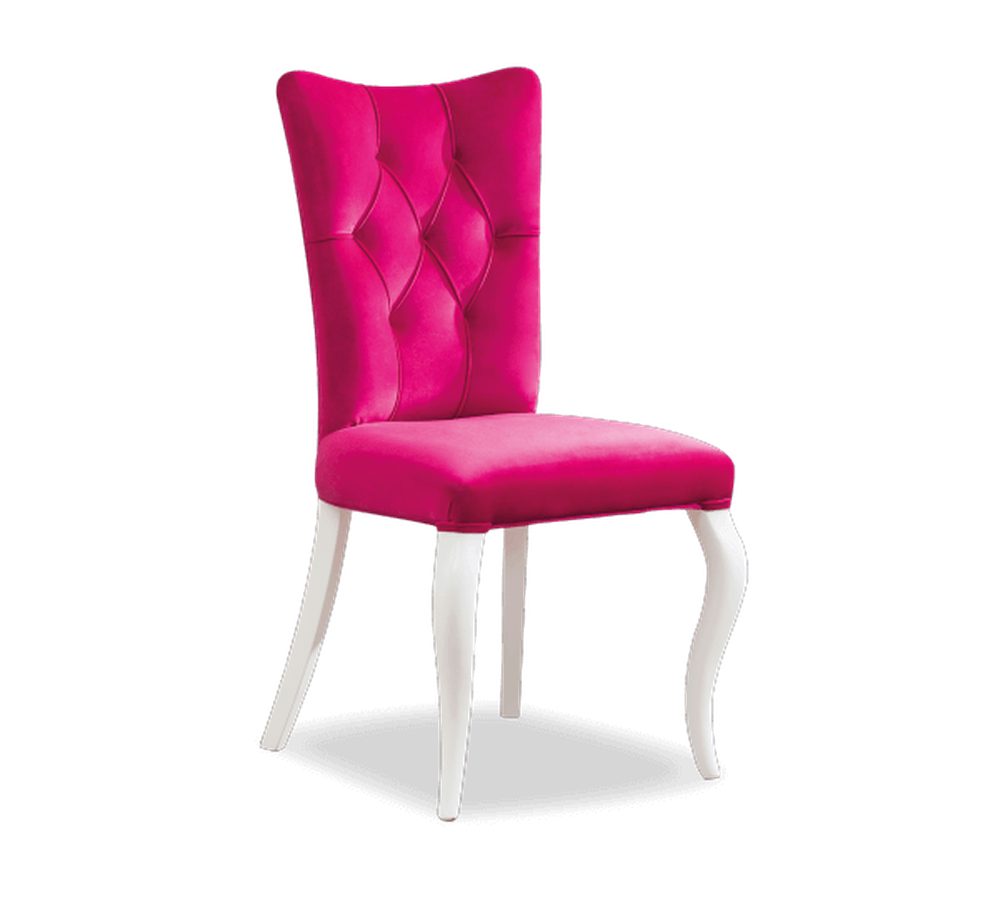 Farblich abgestimmt zum Gesamtkonzept der Yakut Kollektion, gibt es diesen bezaubernden Stuhl in den Farben Fuchsia und Weiß.
