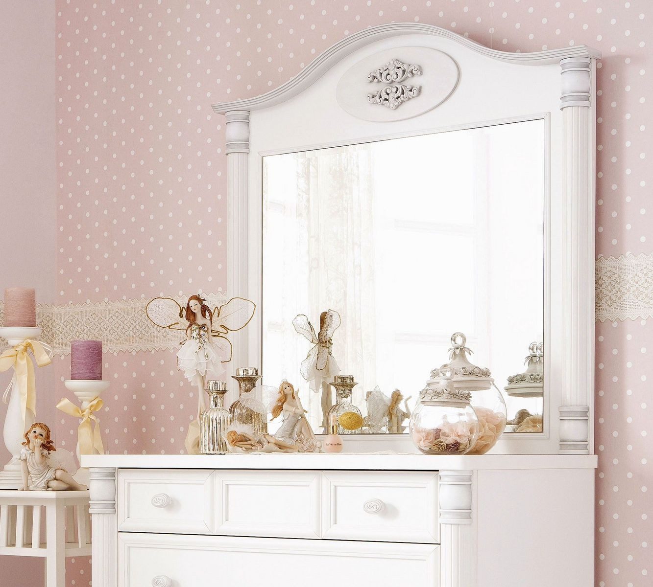 Mit dem Aufsatzspiegel wird aus der Romantic Kommode ganz schnell eine wundervolle Schminkkommode.