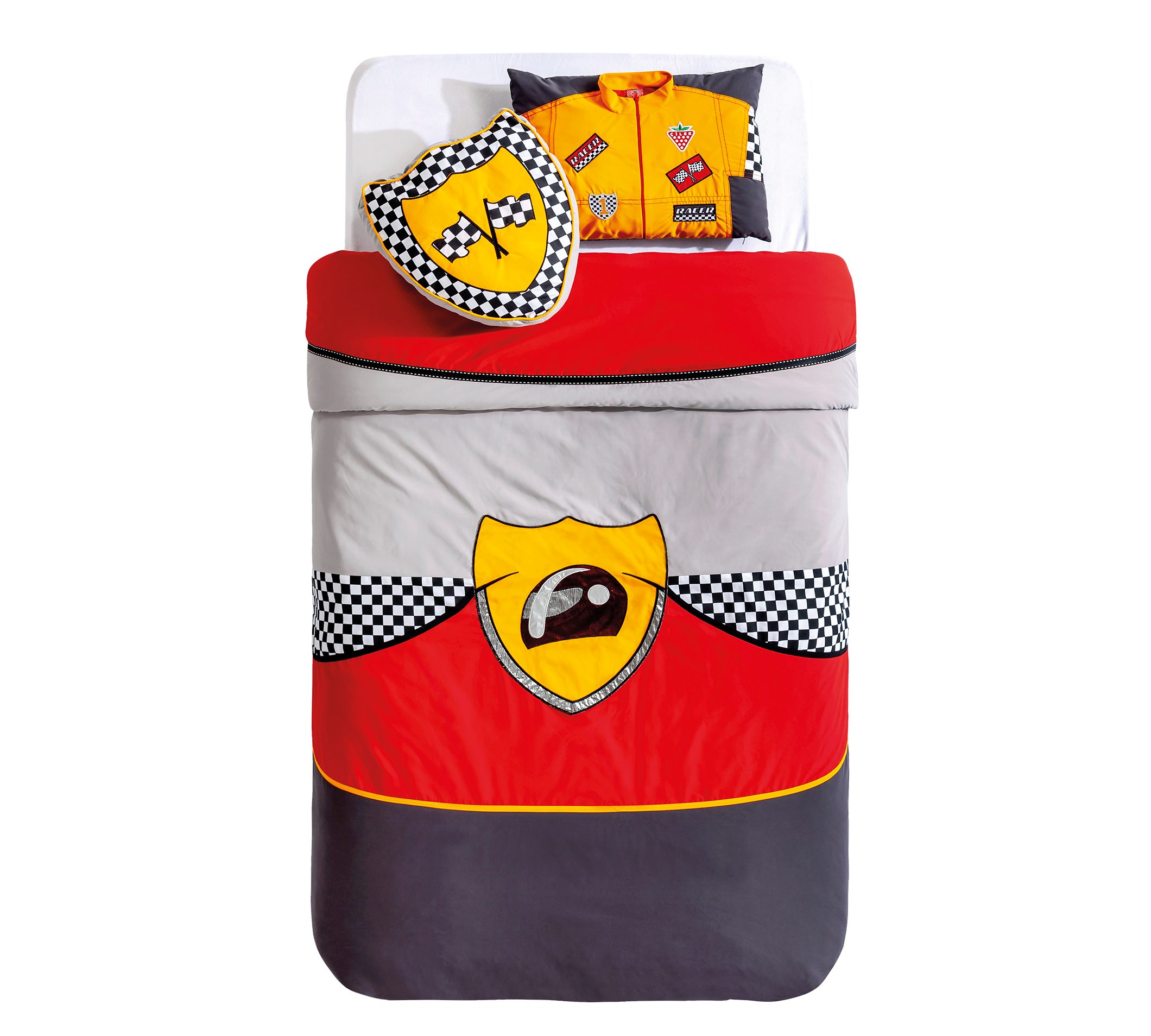 Jeder Autofan und jedes Autobett ist erst so richtig komplett, wenn er sich rennfahrermäßig betten oder es sich rennfahrermäßig präsentieren kann. Mit der BISPEED-Tagesdecke geht das rasend schnell.
