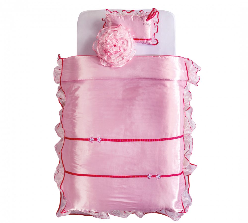 Um die Bettwäsche kleiner Prinzessinnen tagsüber vor Verunreinigungen zu schützen und um dennoch den rosaroten Gesamteindruck zu bewahren, wirft man einfach die LADY Tagesdecke über das Prinzessinnenbett.