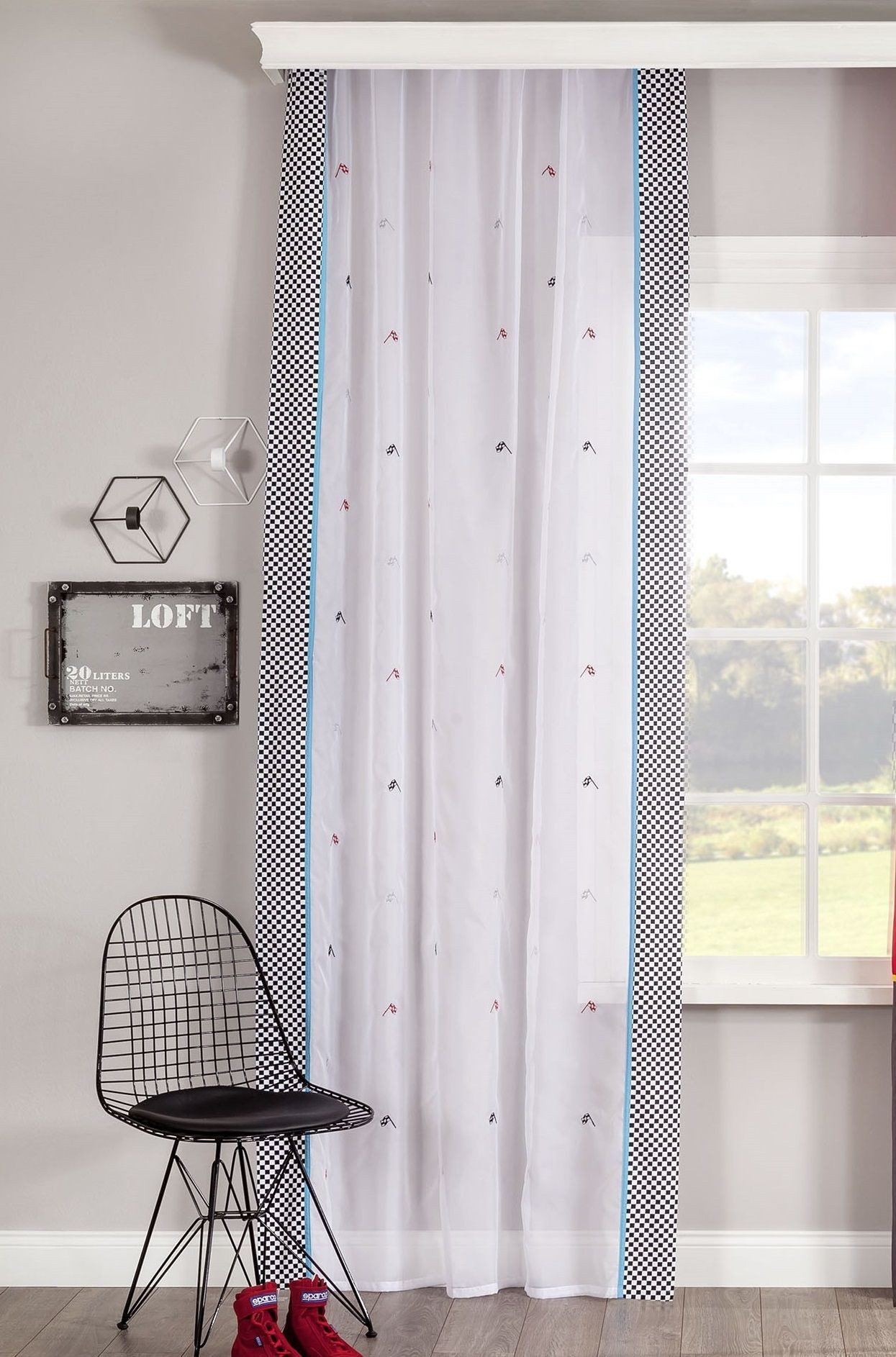 Ein lichtdurchlässiger Vorhang, der mit jedem Luftzug die Fahnen schwingt. Kleine und große Autofans werden begeistert sein.