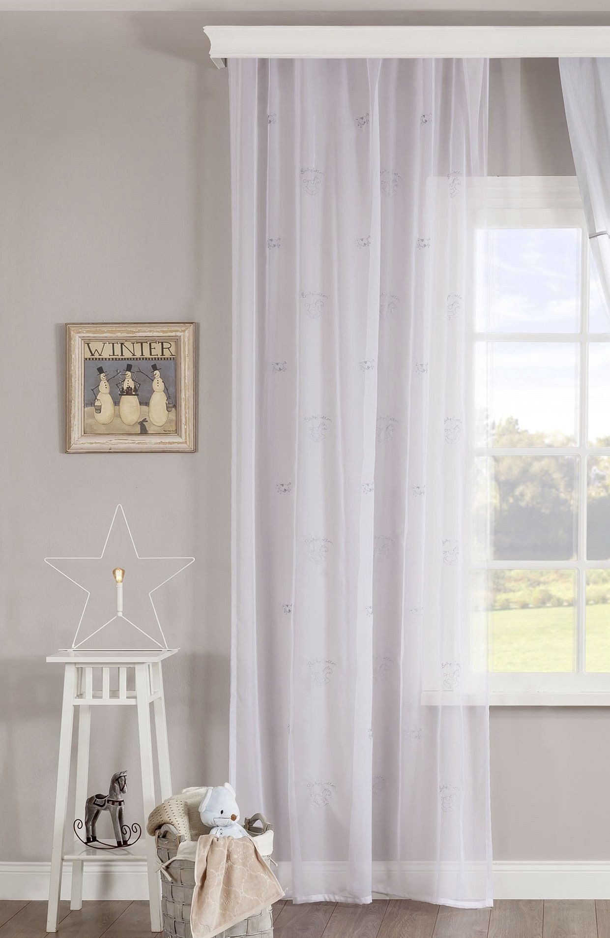 Auch auf dem durchschimmernden Vorhang tanzen kleine Ponys bis zum Mond und zurück.