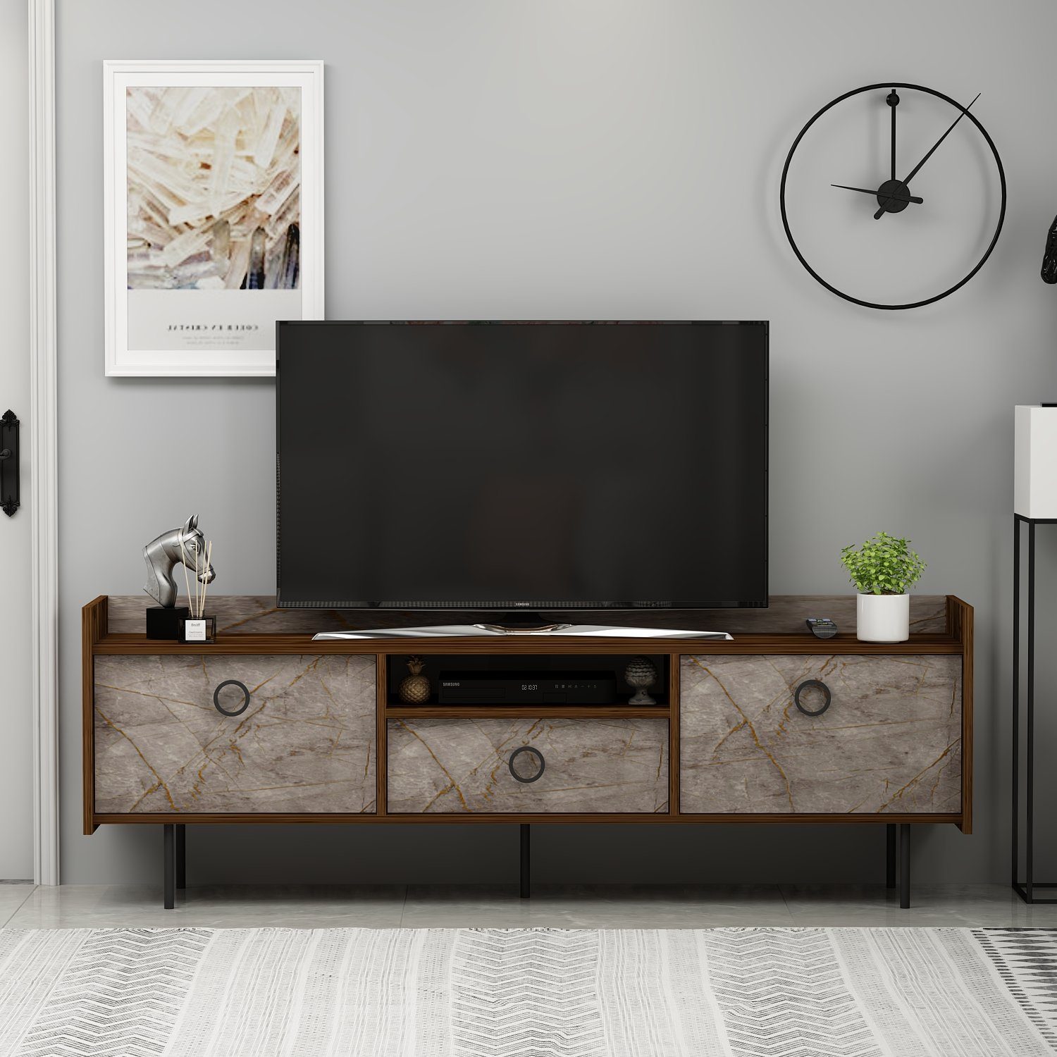 Mit unserem TV Lowboard der Marke moebel17 punkten Sie nicht nur mit dem individuellen Design, sondern auch durch die Stabilität dank der Metallfüße. Hier können Sie auch größere Fernseher ohne Probleme aufstellen. Die Ablageböden bieten Ihnen zusätzlichen Stauraum, um alltägliche Gegenstände, wie z.B. Bücher, DVD`S für den Filmabend oder auch Kuscheldecken aufzubewahren. Private Gegenstände sind auch problemlos zu verstauen durch die Türen. Diese TV-Bank wird der neue Blickfang in Ihrem Wohnzimmer.