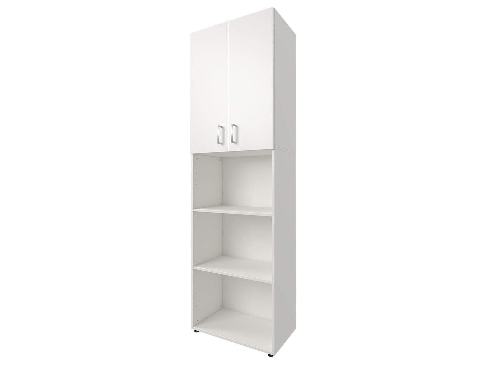 Die Kombi "Trio 23" mit den Maßen von 57 cm Breite, einer Höhe von 190 cm sowie einer Tiefe von 34,5 cm ist mit 2 Holztüren und 3 höhenverstellbaren Einlegeböden ausgestattet. Hier finden Ordner, Spielzeug, Bilderbücher und auch Dekoratives seinen Platz.