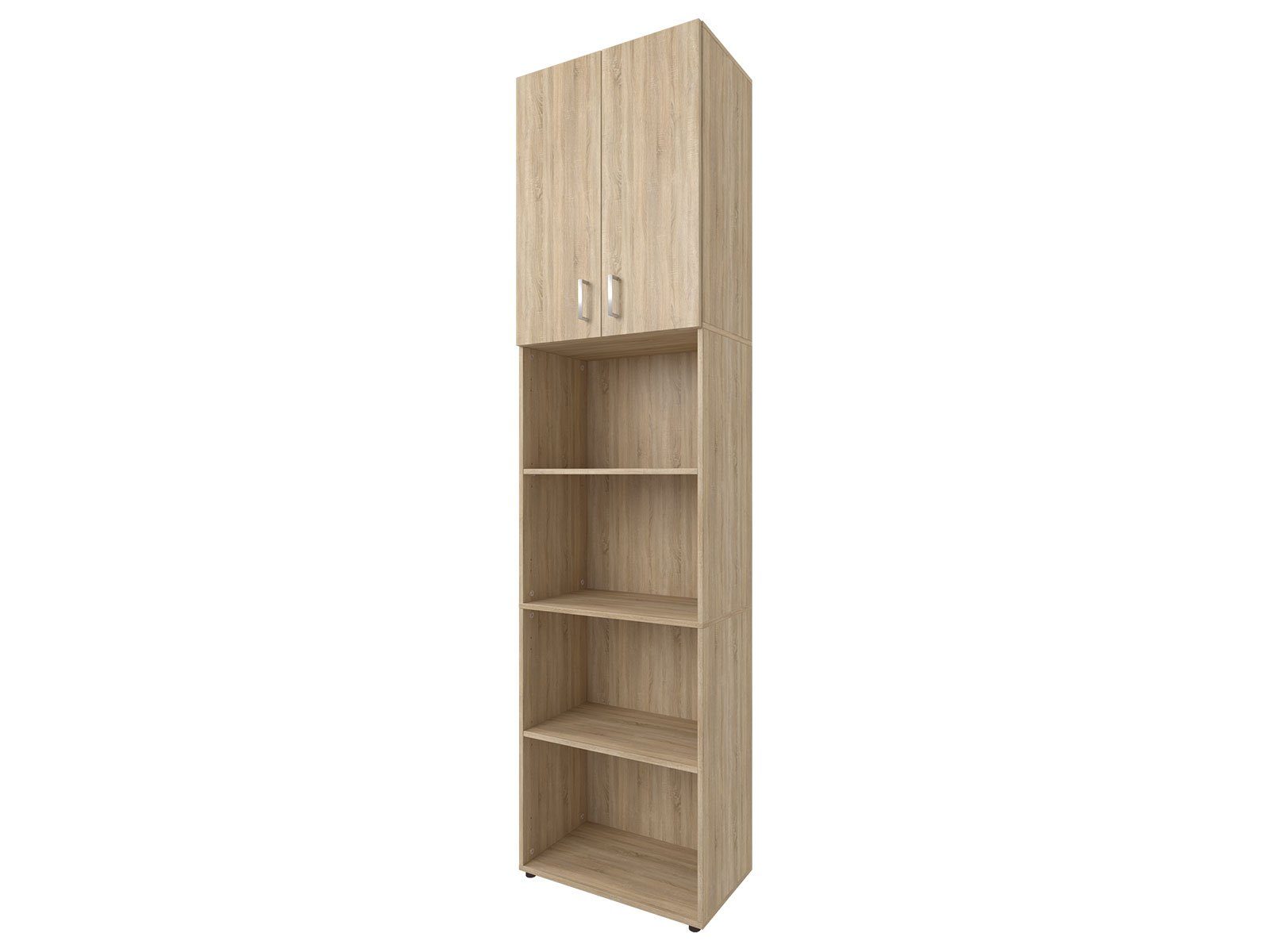 Die Kombi "Trio 24" mit den Maßen von 57 cm Breite, einer Höhe von 231 cm sowie einer Tiefe von 34,5 cm ist mit 2 Holztüren und 3 höhenverstellbaren Einlegeböden ausgestattet. Hier finden Ordner, Spielzeug, Bilderbücher und auch Dekoratives seinen Platz.