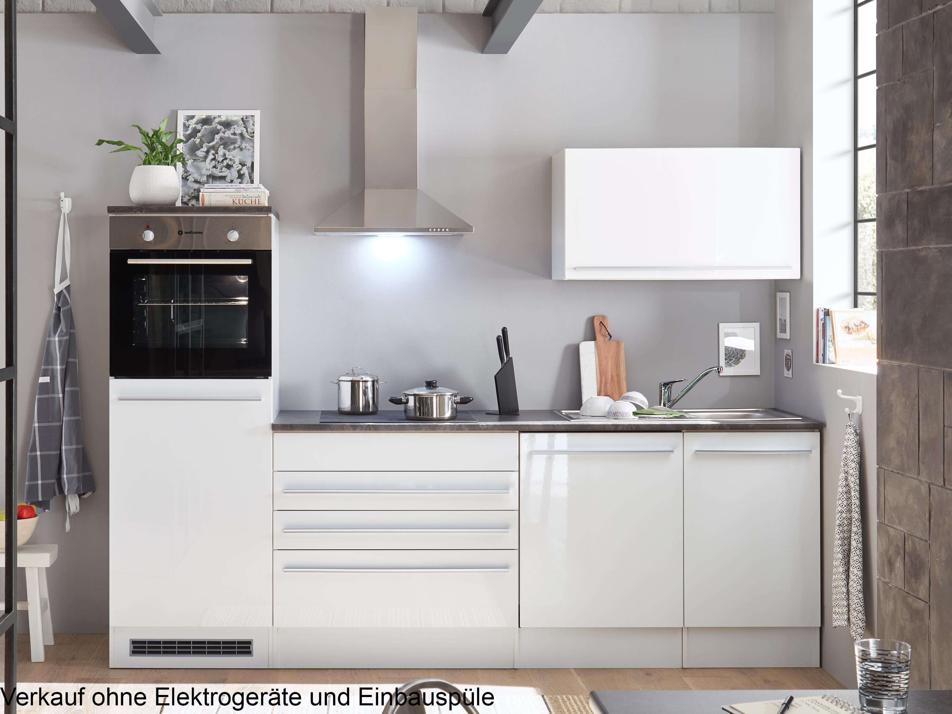 Hinweis Lieferumfang | Lieferung ohne Elektrogeräte und Einbauspüle, ohne Inhalt und Dekoration |