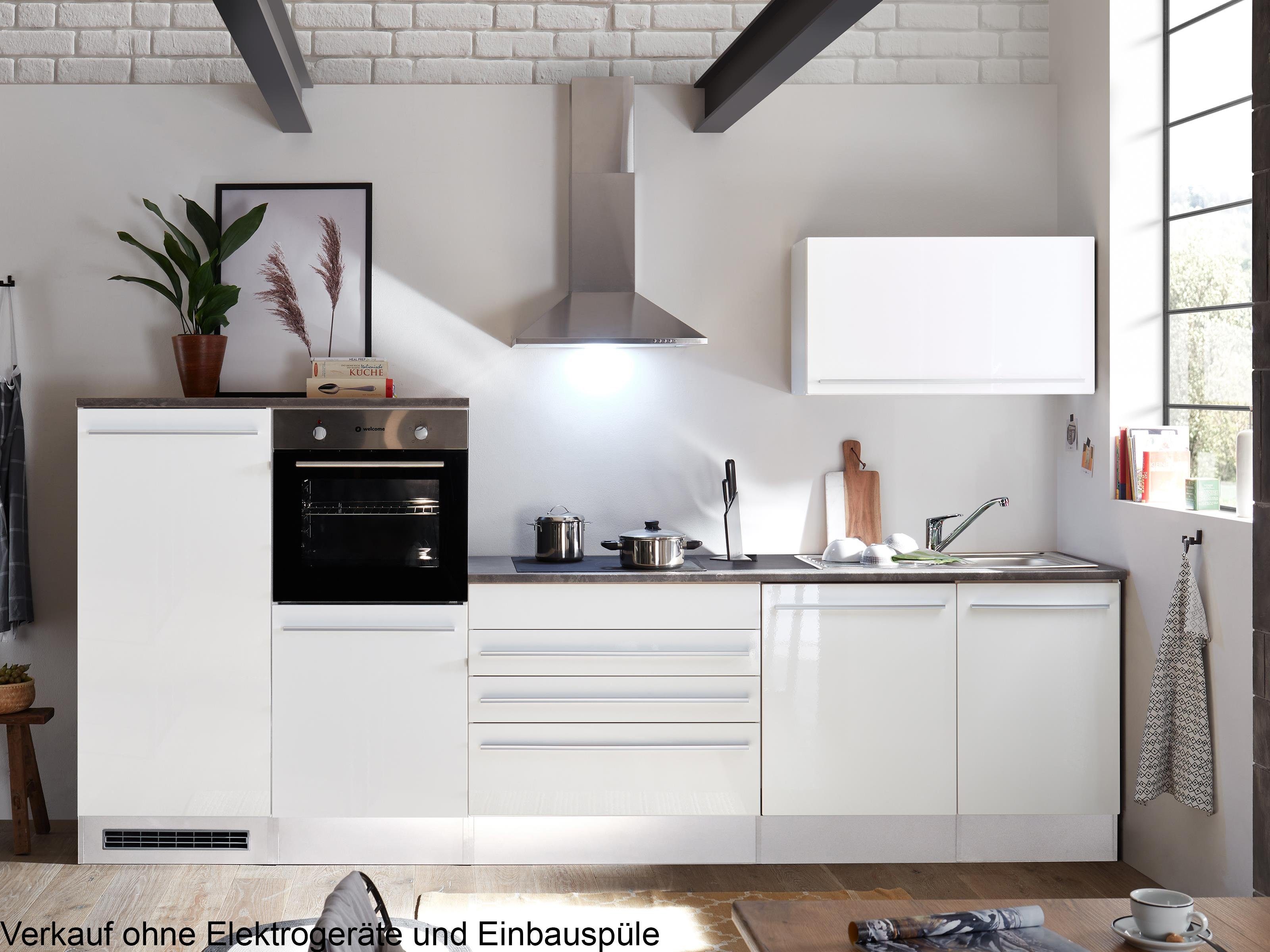 Hinweis Lieferumfang | Lieferung ohne Elektrogeräte und Einbauspüle, ohne Inhalt und Dekoration |