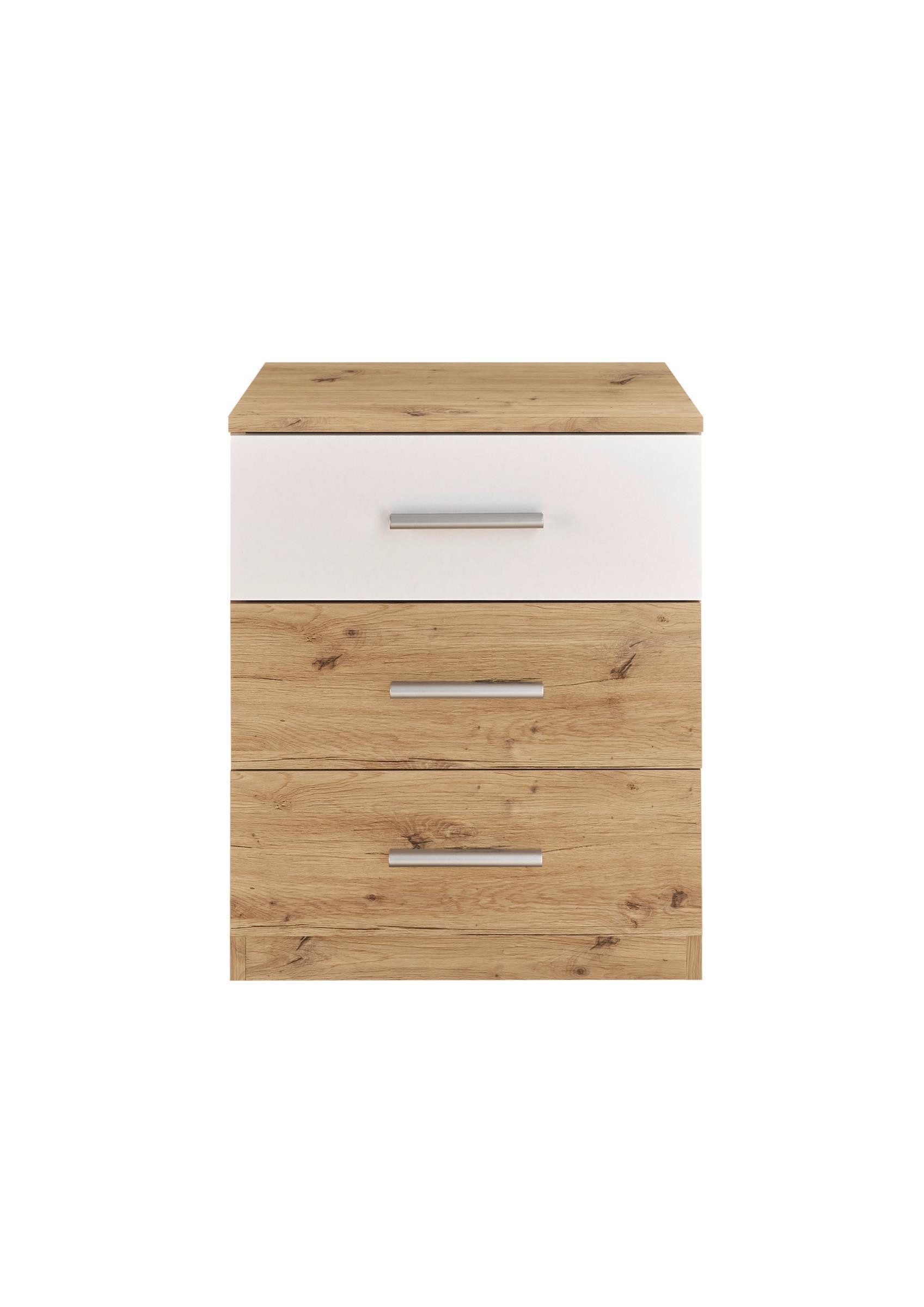 Die praktische Nachtkommode "Isobel I" überzeugt nicht nur mit ihrem schlichten Design und ihrer Funktionalität, sondern bietet darüber hinaus auch noch viel Stauraum durch 3 geräumige Schubkästen. Der Oberboden bietet eine weitere nützliche Abstellfläche für beispielsweise die Wasserflasche oder die Nachttischlampe.