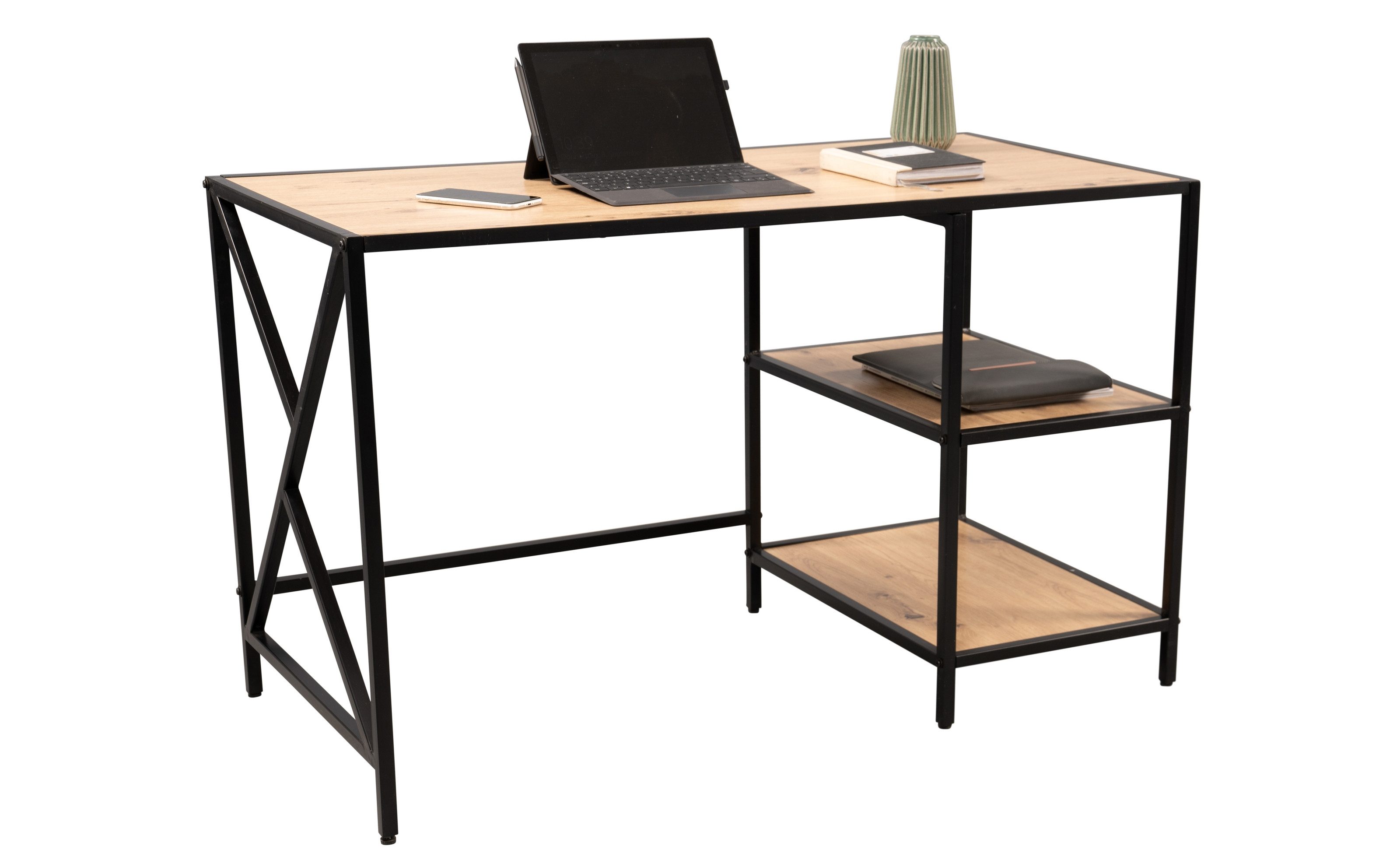 Schreibtisch "Brisbane" aus MDF / Metall in Artisaneiche/schwarz. Abmessungen (BxHxT) 120x74x60 cm