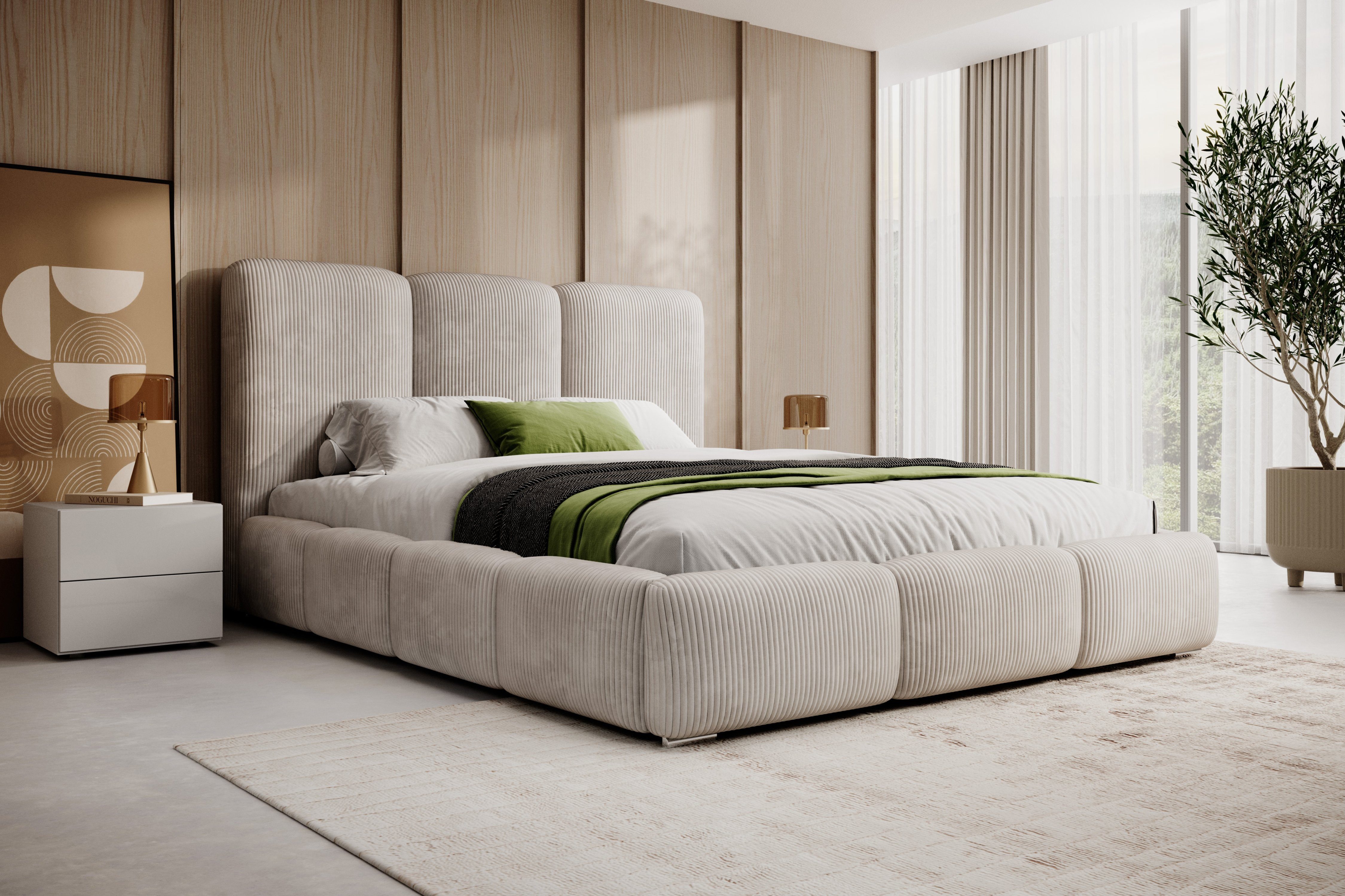 Das Polsterbett Era aus der Poso Kord Kollektion verbindet elegantes Design mit der Gemütlichkeit eines plüschartigen Veloursgewebes. Es bietet eine luxuriöse Ergänzung für jedes Schlafzimmer und verspricht gleichzeitig angenehmen Komfort und eine einladende Atmosphäre.