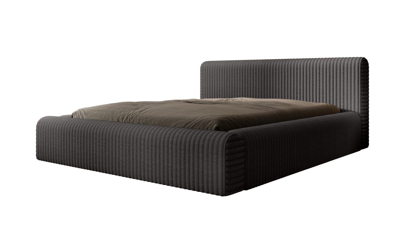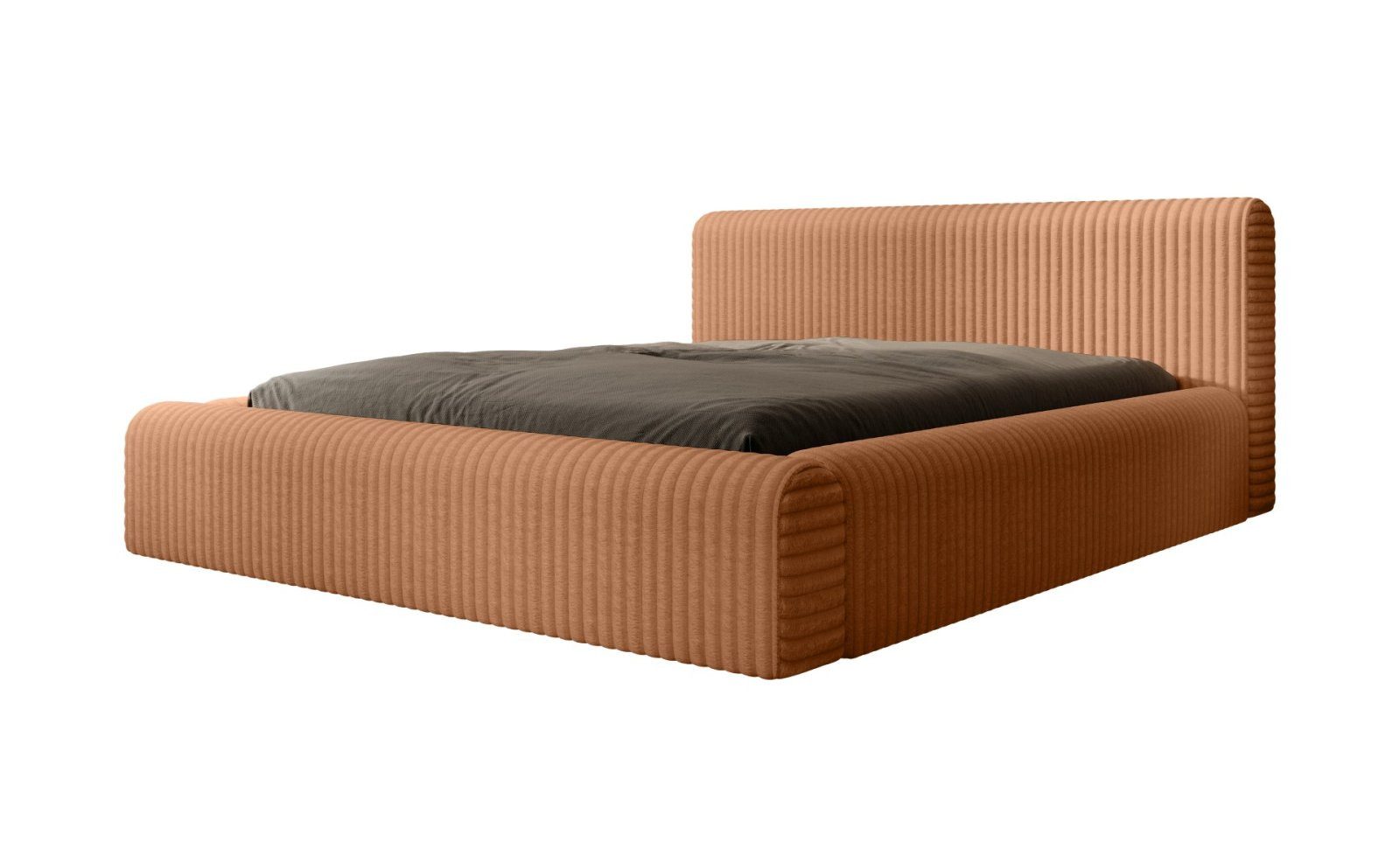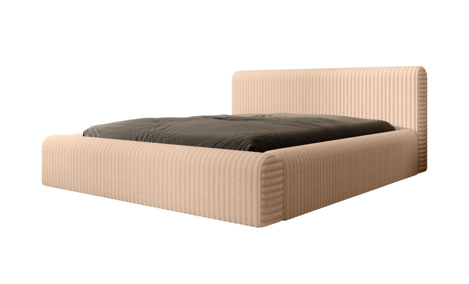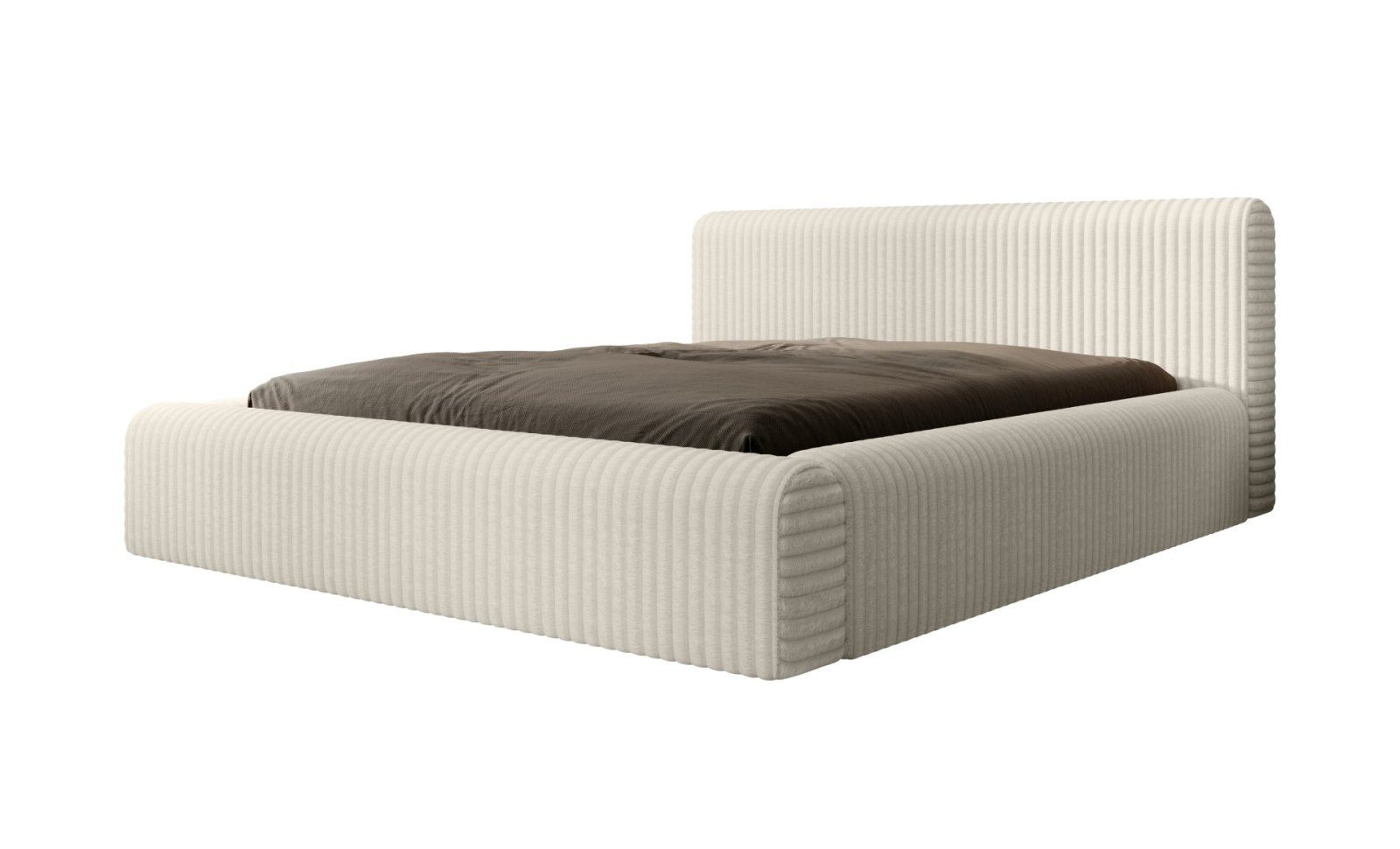 Vertikale Cordrillen soweit das Auge reicht: Kopfteil, Bettseiten und Fußteil sind komplett in Softcord Vito eingefasst. Der Stoff ist nicht nur samtweich, sondern auch robust – perfekt also für alle, die sich eine Portion Textur ins Leben holen möchten.