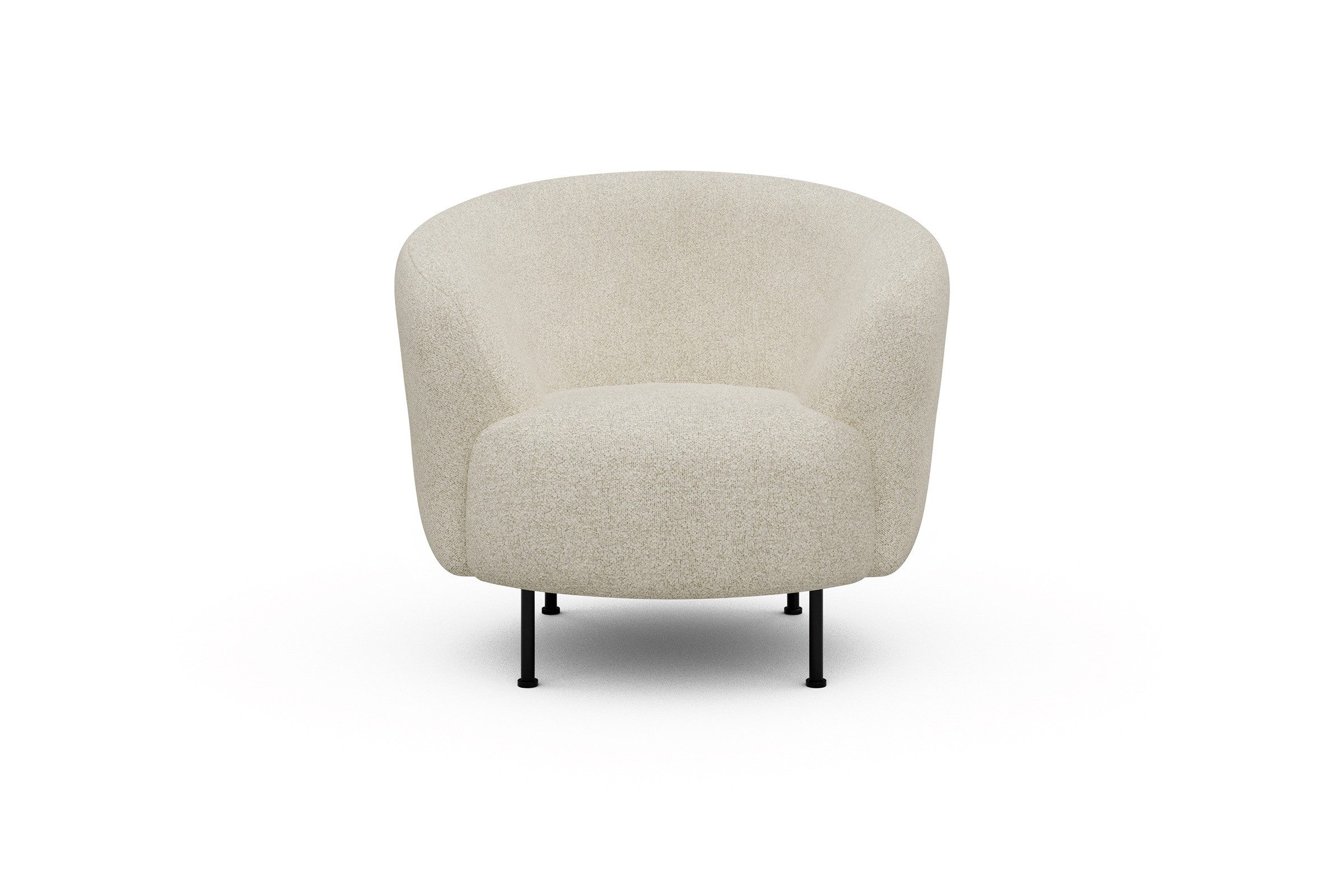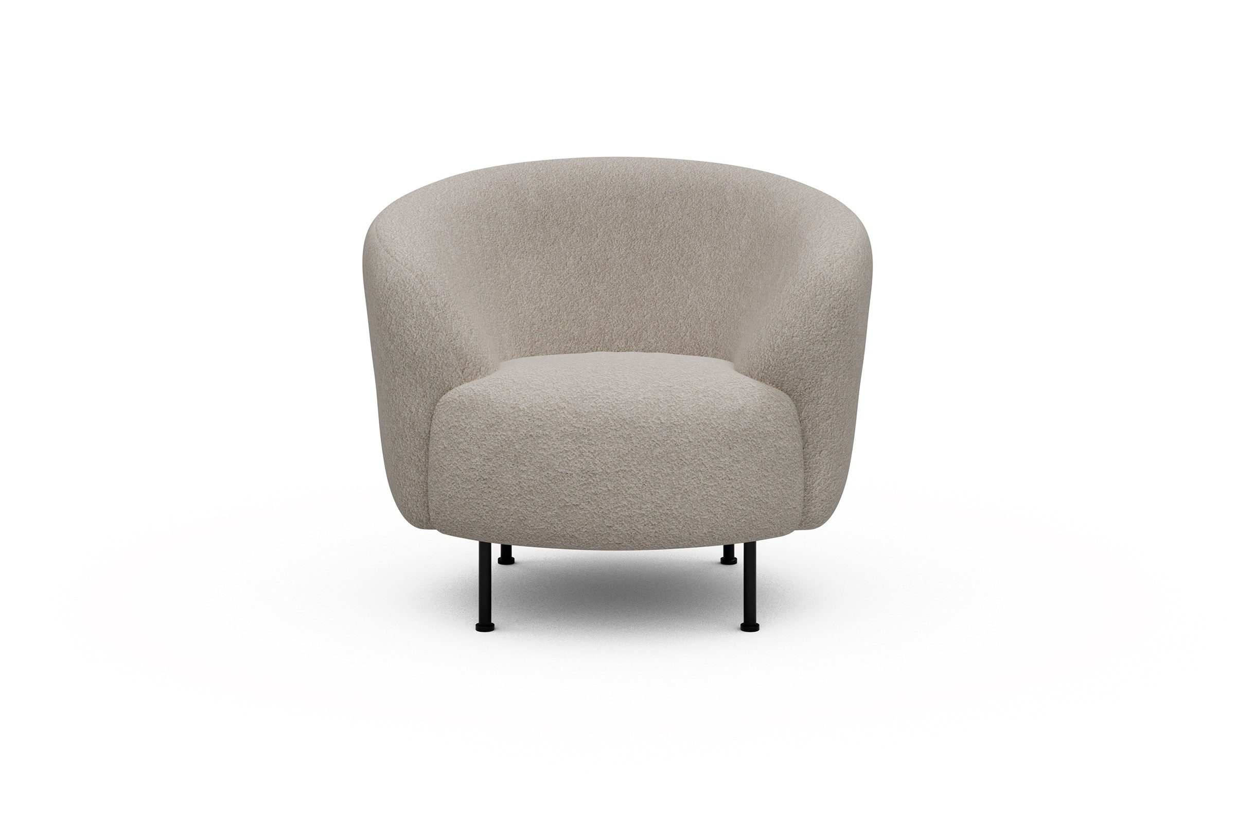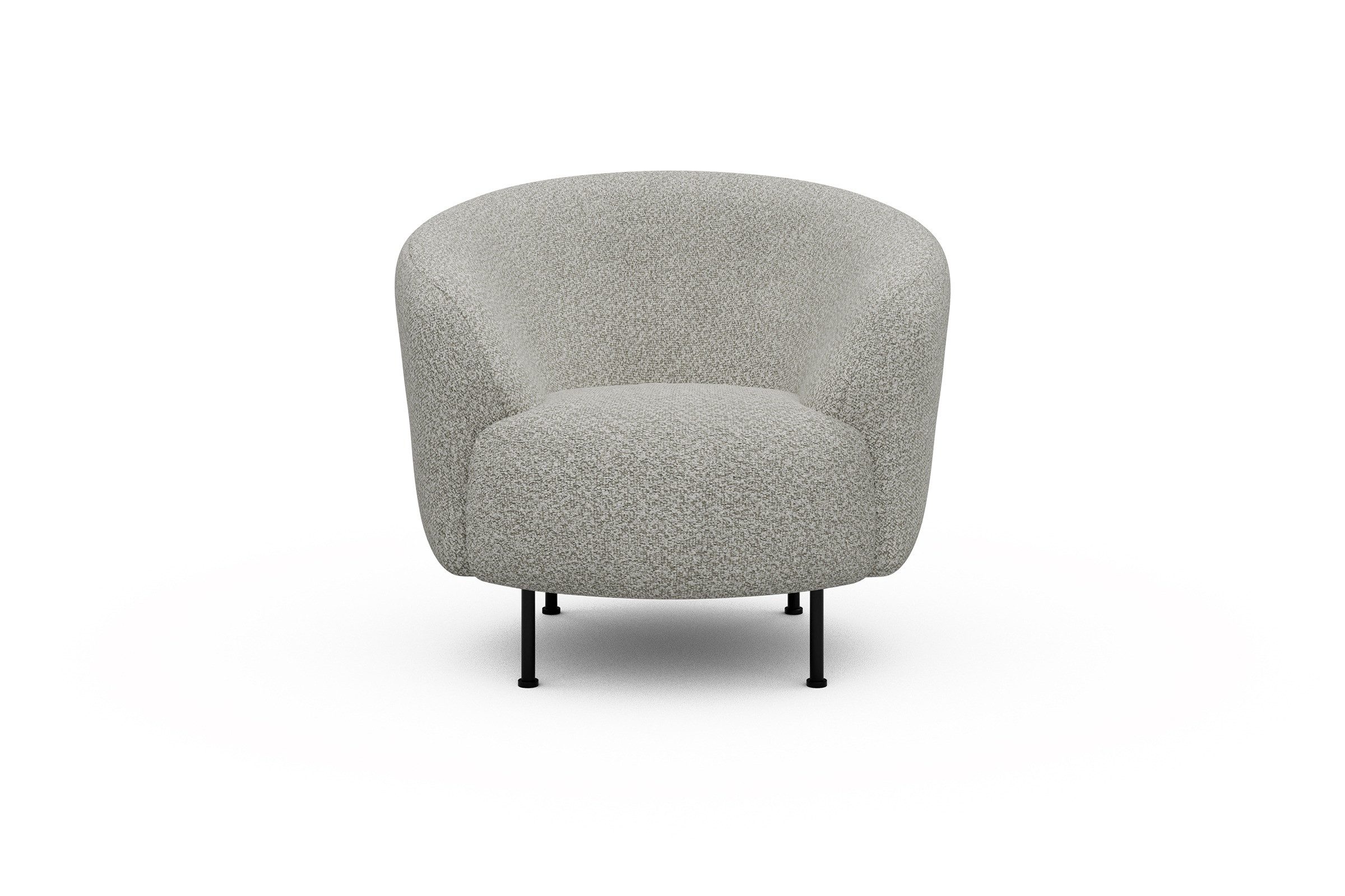 Die organische Form des Sessels erinnert fast an einen Skulpturengarten in einem stylischen Architekturmagazin. Aber keine Sorge: Hier wird nicht nur geguckt, hier wird gesessen – und zwar mit Stil. Der Bezug aus samtig-weichem Bouclé (90 % Polyester, 10 % recycelte Baumwolle, 395 g/m²) ist nicht nur griffig und leicht glänzend, sondern auch überraschend robust mit einer Abriebfestigkeit von 40.000 Scheuertouren. Pilling? Fehlanzeige – glatte 5. Lichtechtheit? Ebenfalls 5. Also auch nach dem 100. Sonnenstrahl noch schön wie am ersten Tag.