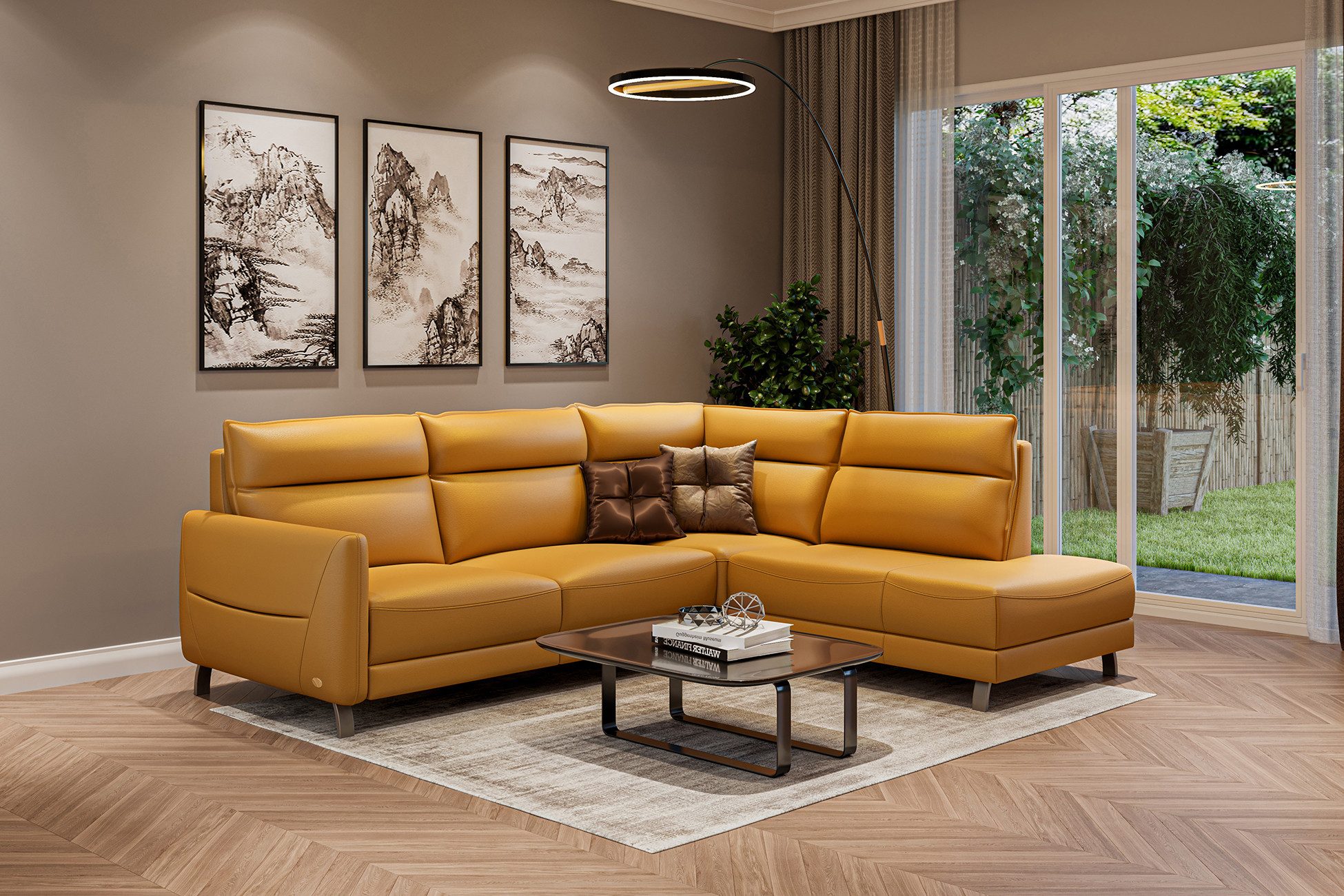 Das exklusive Ecksofa Rom vereint italienische Handwerkskunst, zeitloses Design und höchsten Komfort. Der rundum bezogene Bezug aus 100 % Rindsleder (1,3–1,5 mm Dickleder) überzeugt mit einer angenehm weichen Natural-Touch-Haptik und zugleich hoher Strapazierfähigkeit. Jede Lederstruktur ist ein Unikat und fügt sich harmonisch in moderne Wohnräume ein.