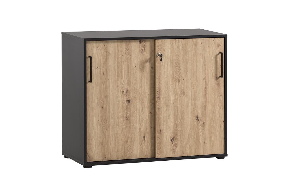 Aktenschrank Raven Small, HxBxT 84x51x41cm, 2 Fächern & 1 Flügeltür, Eiche/Schwarz