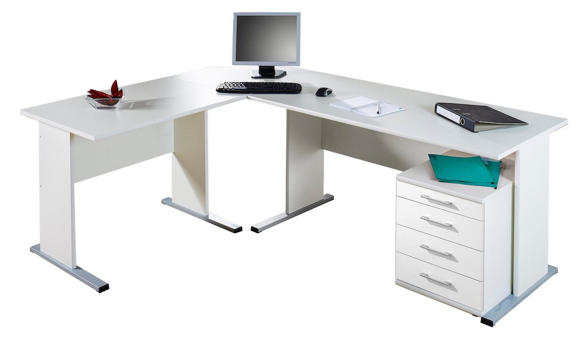 Eckschreibtisch Eckschreibtisch Tiger, HxBxT 75x155x205cm, Lange Seite links,  Weiß