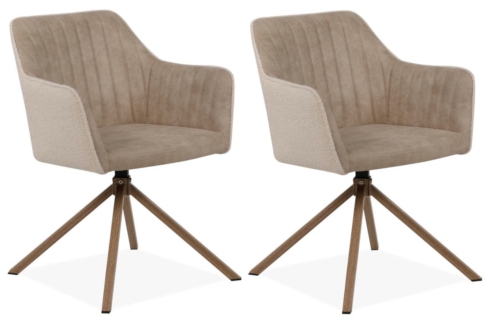 Die Rücken-Innenseite ist mit einer eleganten Steppung versehen, und dank der 360°-Drehfunktion ist er besonders praktisch. Das Metallgestell in Holzoptik verleiht dem Stuhl eine natürliche Note.