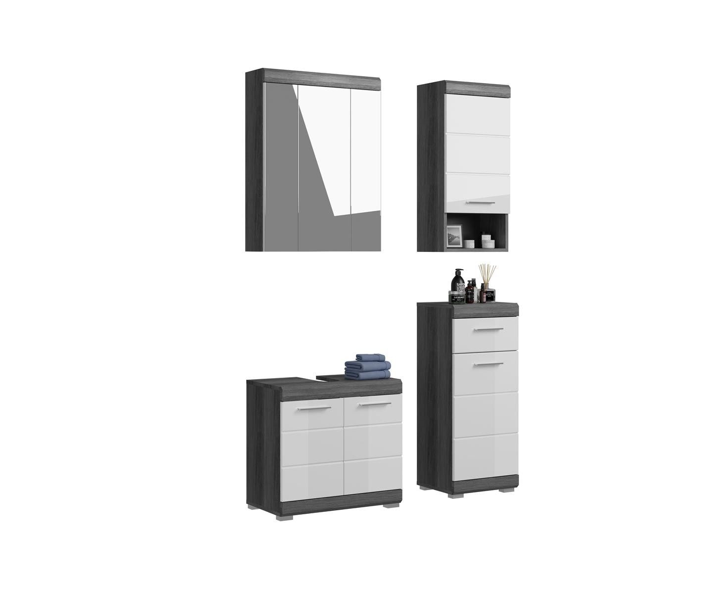Verleihe deinem Badezimmer den ultimativen Style mit unserer Badkombination in angesagtem Rauchsilber Nachbildung und weißem Hochglanz tiefgezogenem Finish. Mit ihrem trendigen Design und der hochwertigen Verarbeitung setzt sie ein modernes Statement in deinem Zuhause. Entdecke jetzt die perfekte Verbindung von Coolness und Funktionalität für dein Badezimmer!